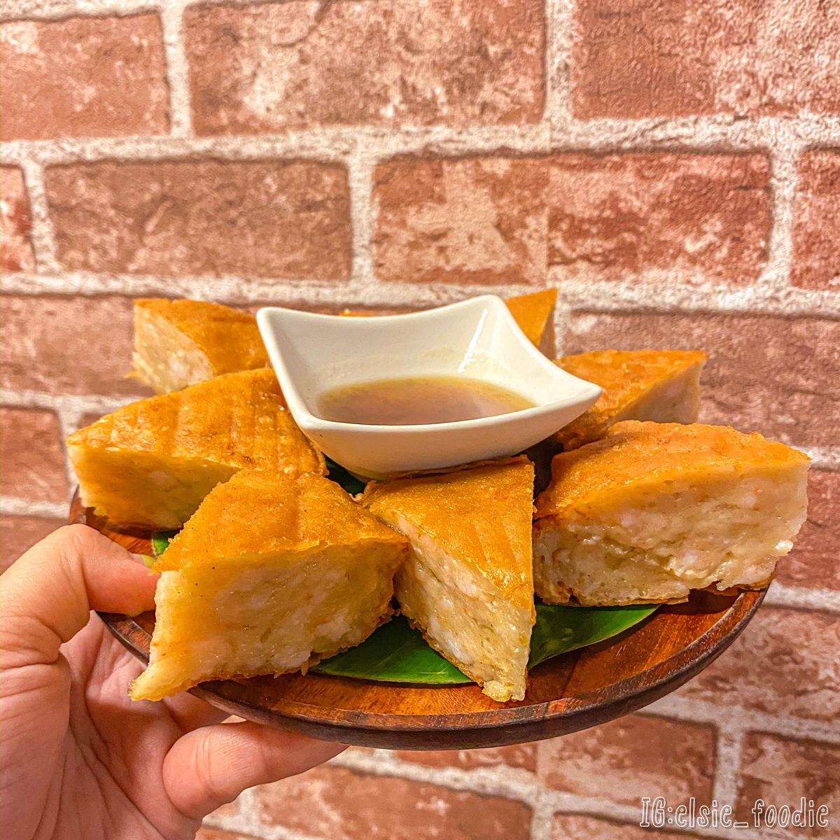 這家在台北真的頗有名!因為它的招牌超厚月亮蝦餅,真的是我前所未見的厚⋯⋯看看那五公分的厚度!而且蝦漿也沒在開玩笑的,很真材實料,咬下去皮會卡滋,內餡的蝦飽滿Q彈。