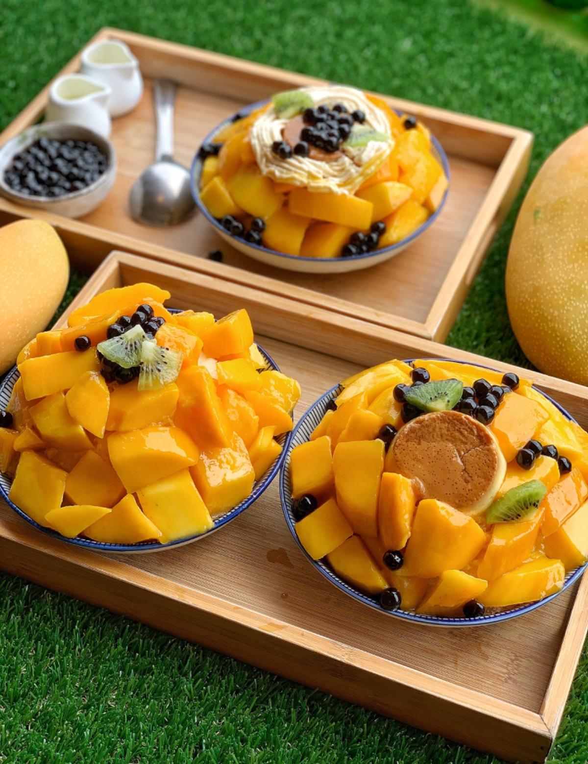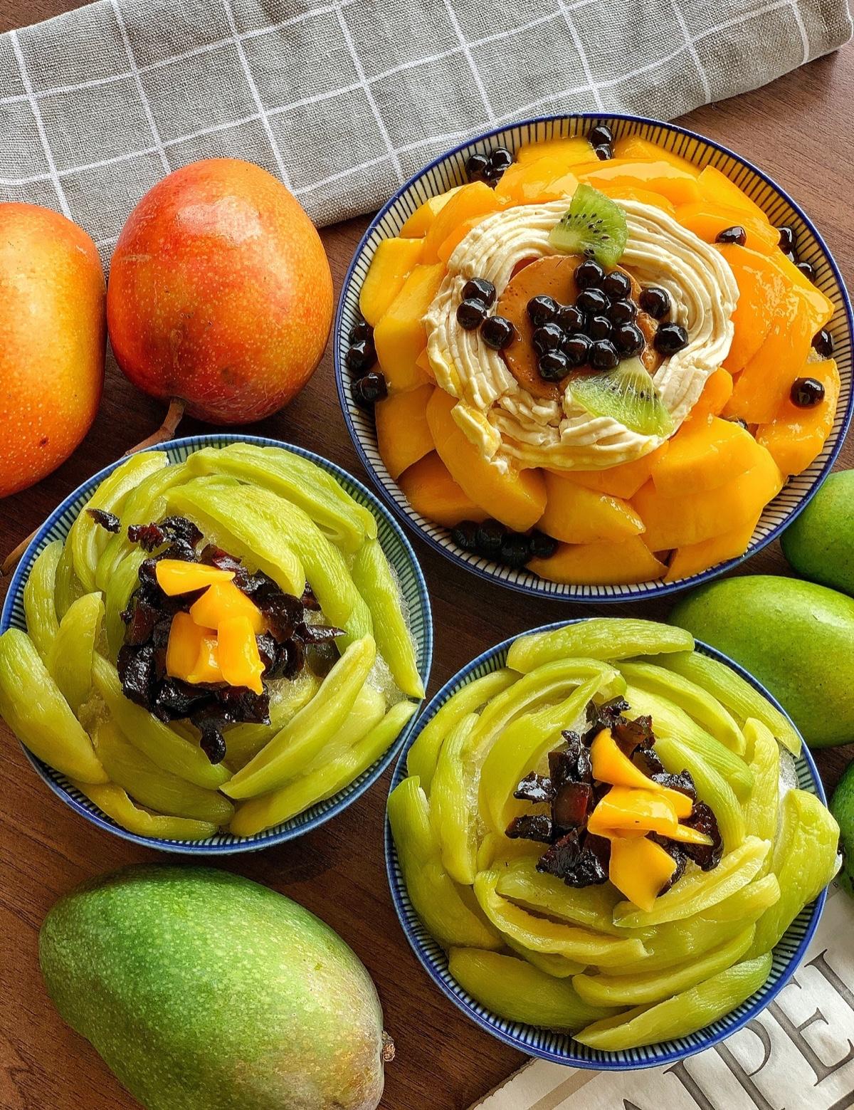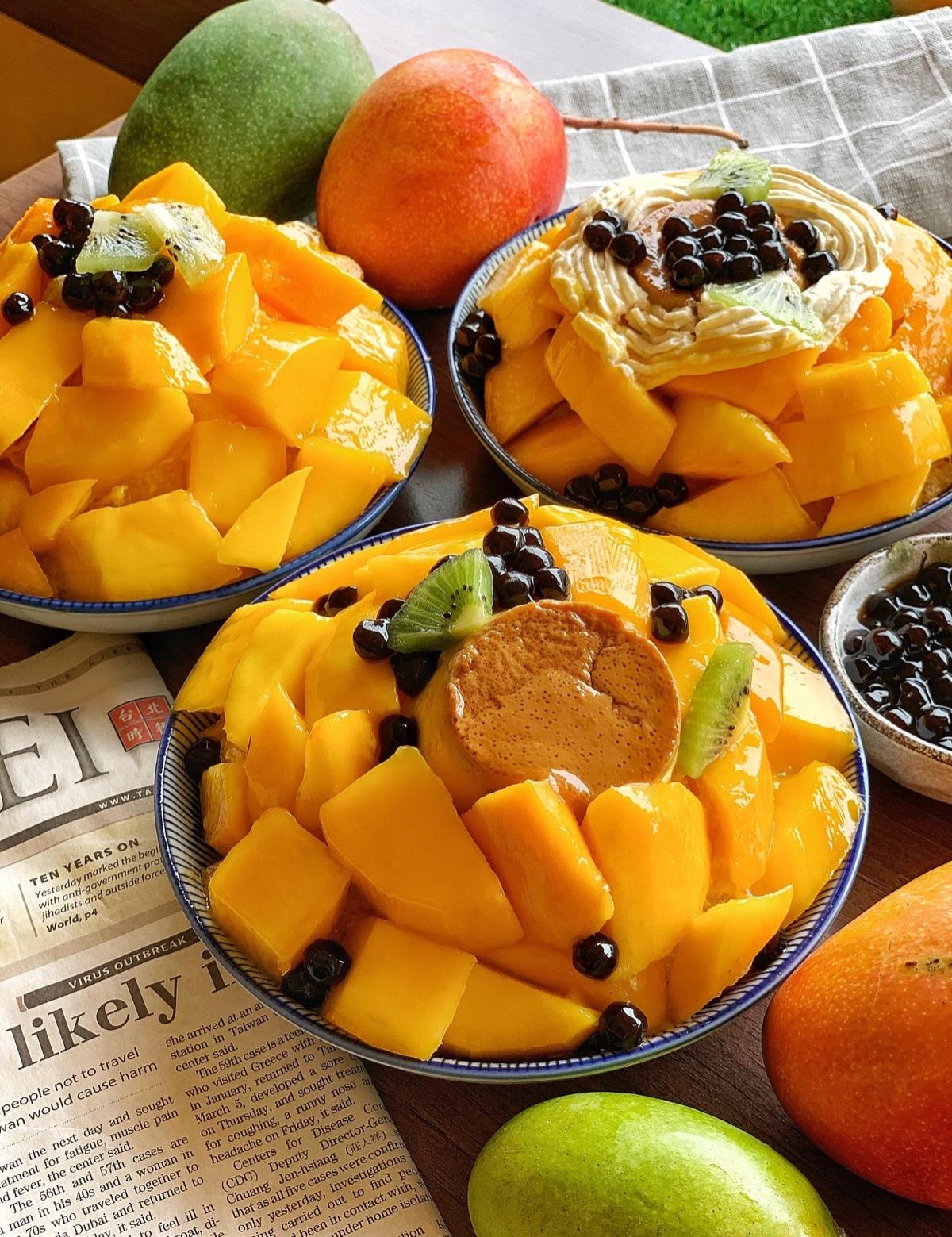 總共有三種不同的芒果鋪的滿滿,