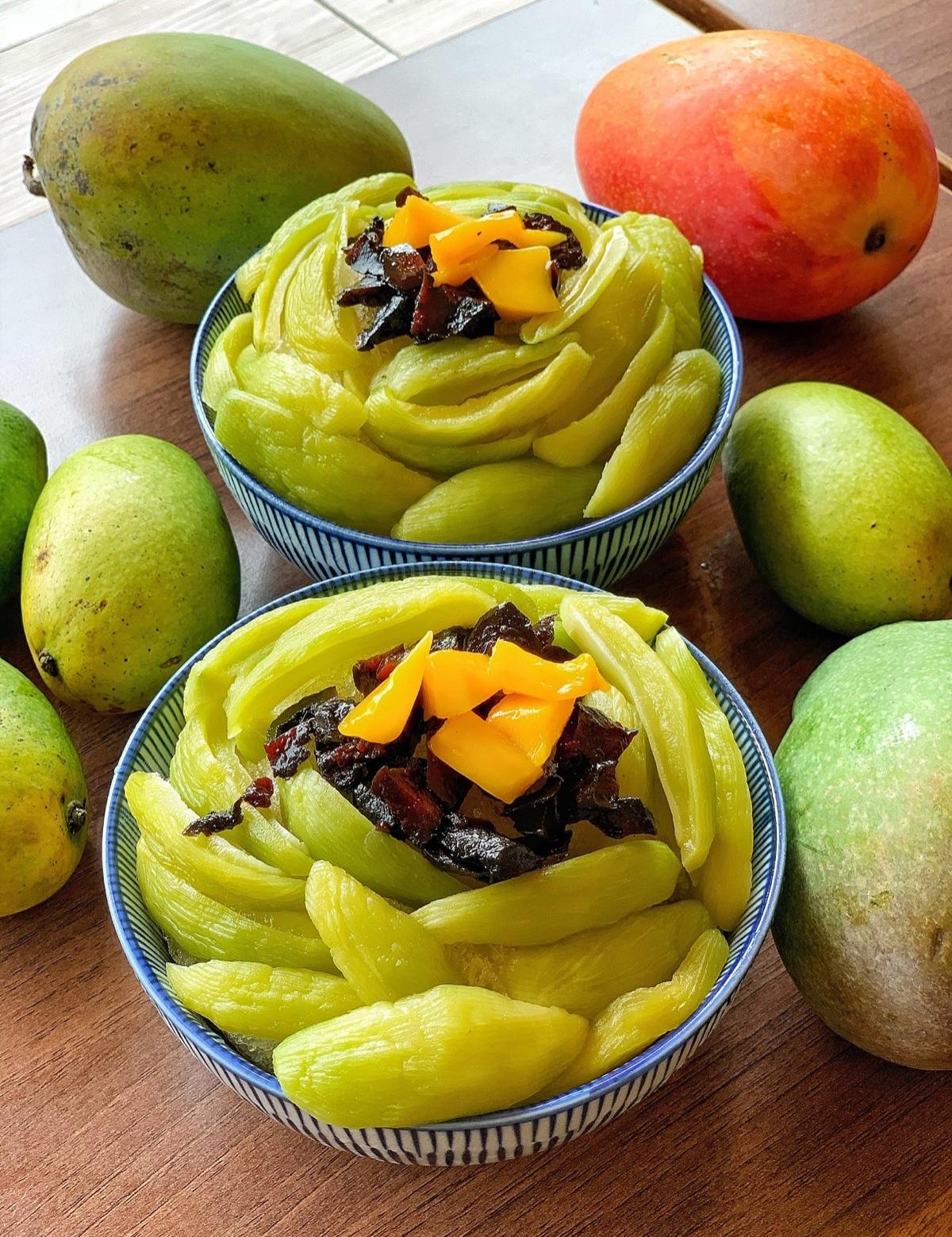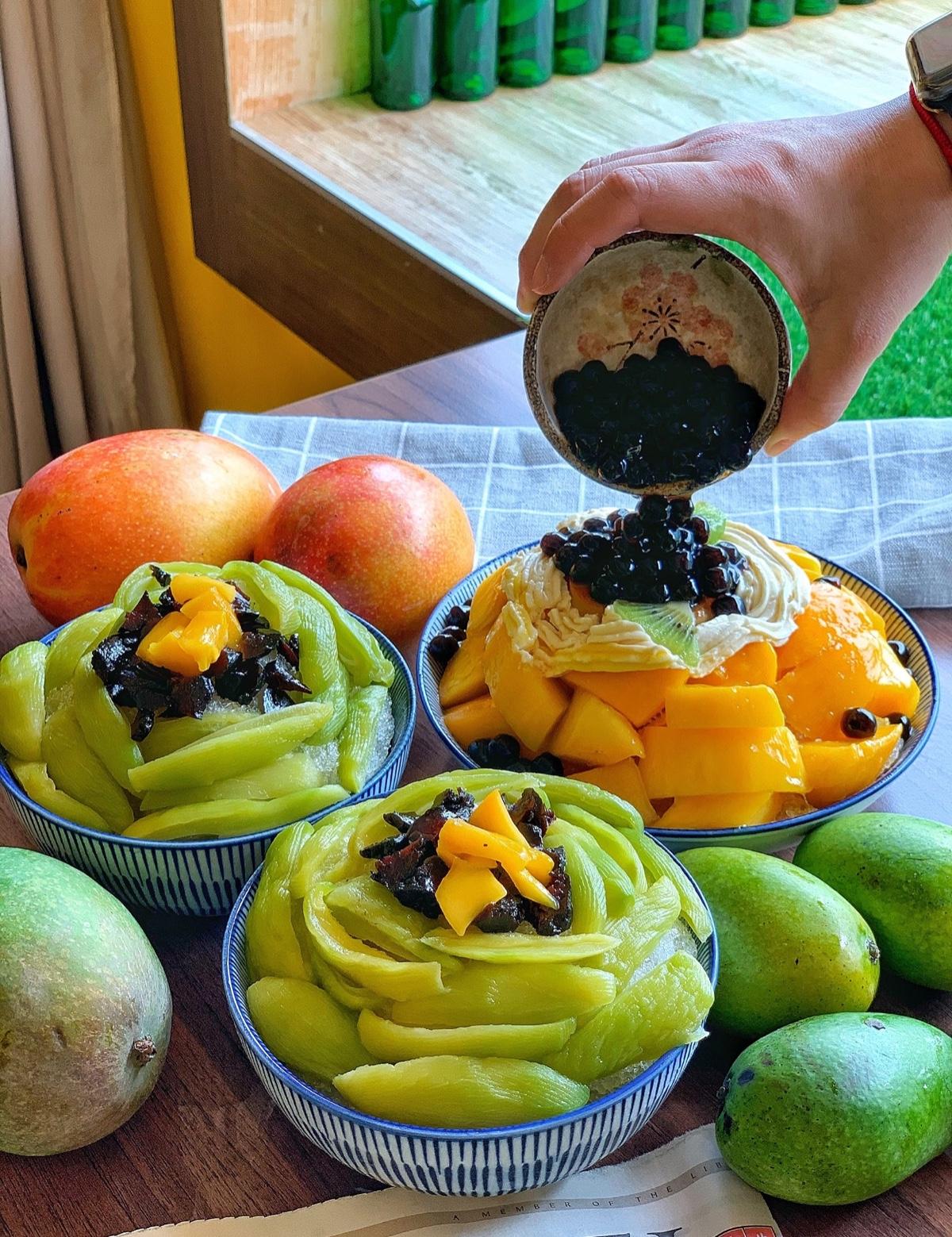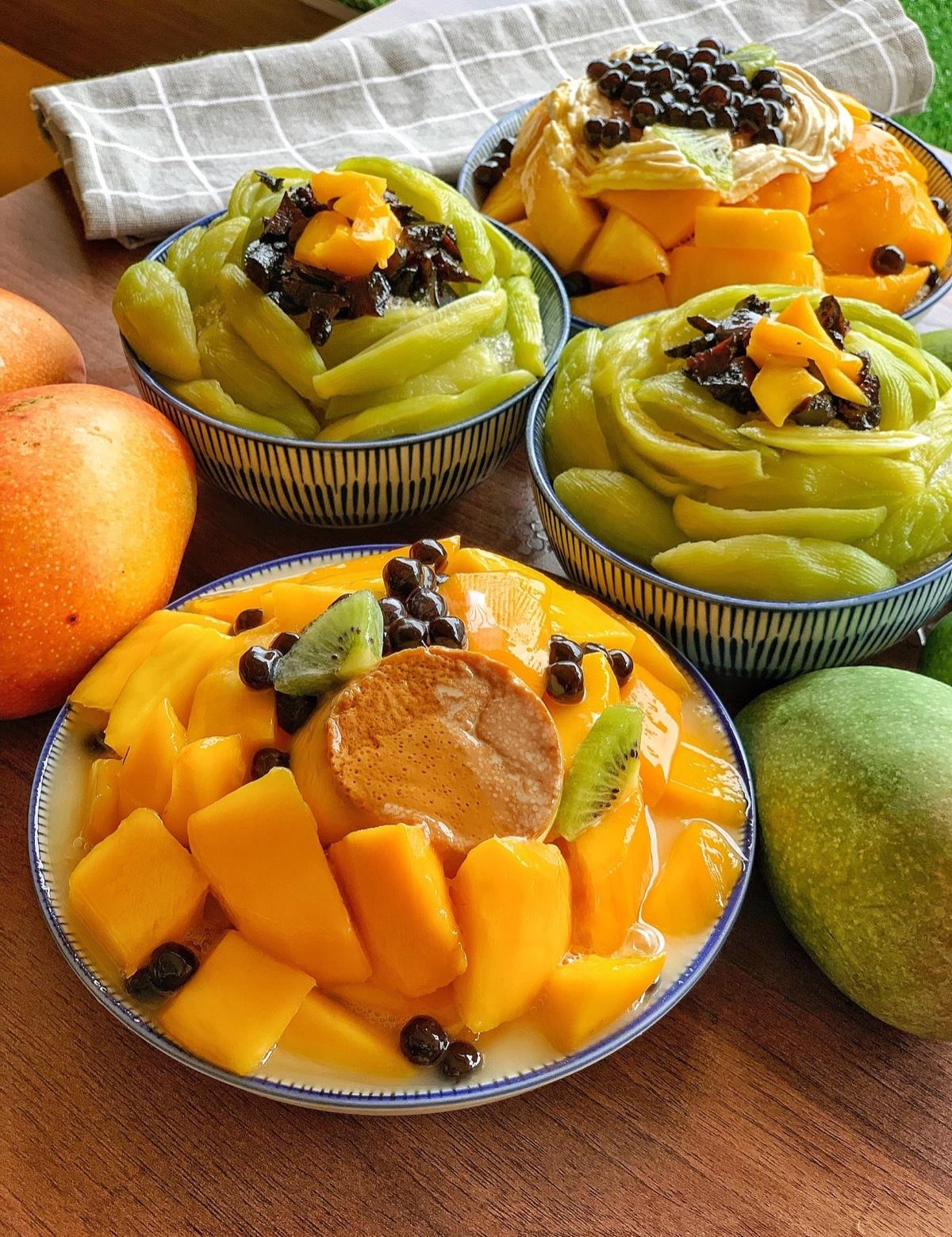 總共有三種不同的芒果鋪的滿滿,
