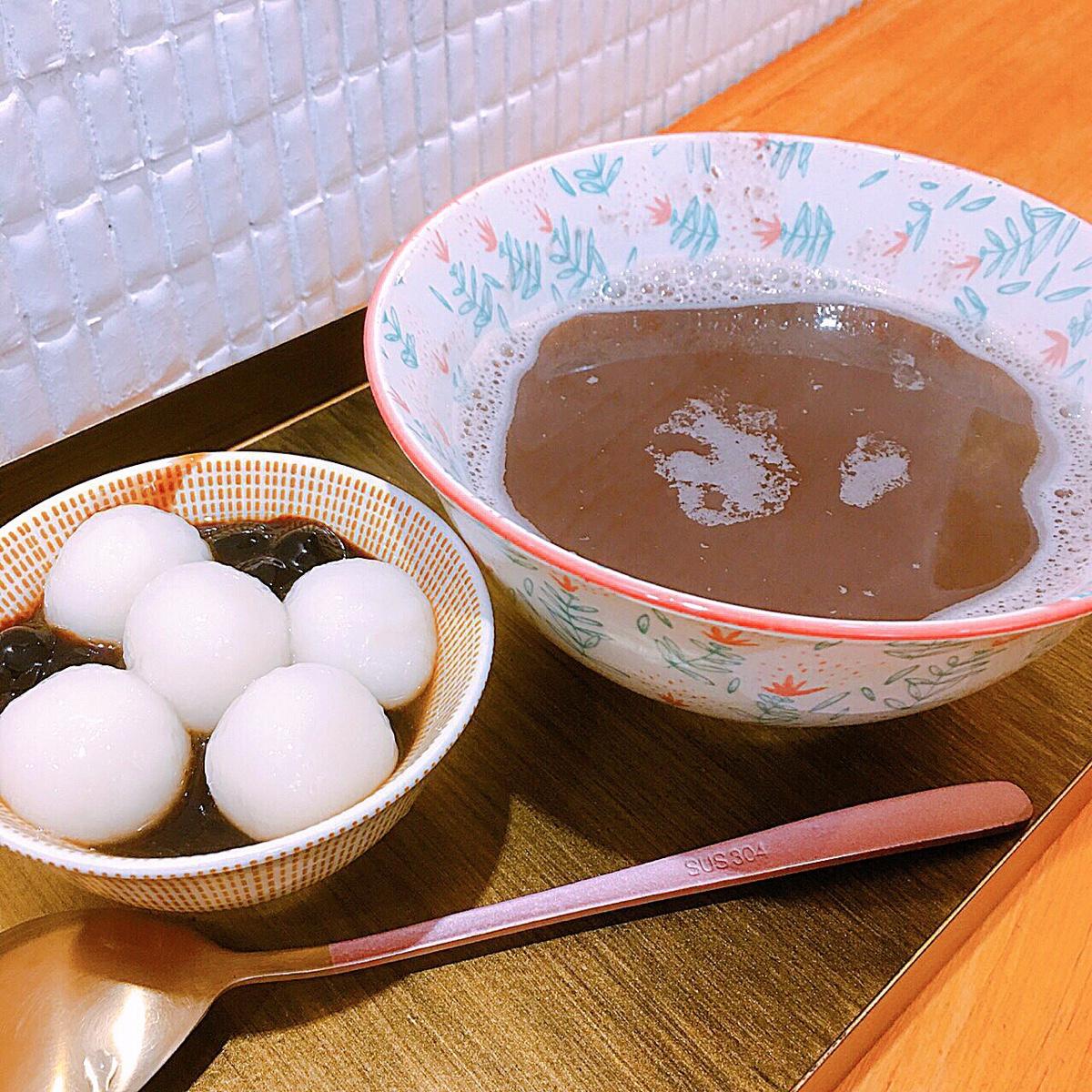 Red bean soup is very silky. Glutinous rice ball is very dense, tapioca pearl has bit of brown sugar flavor which isn’t too sweet. This makes me feel warm when drinking it. 😍