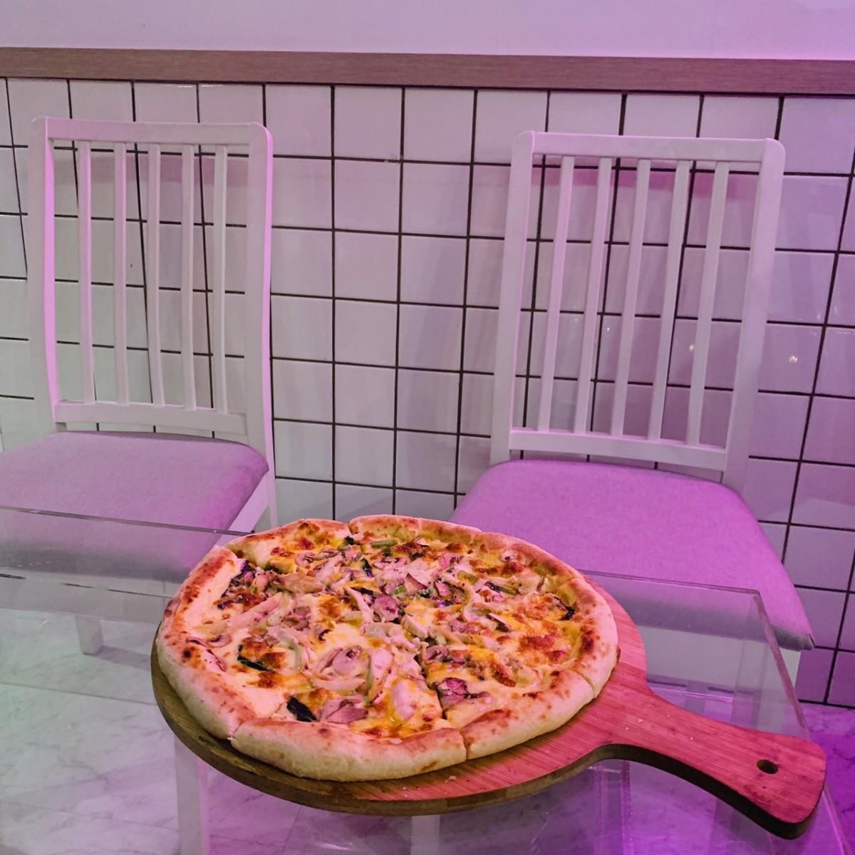 我們點的披薩口味不會太鹹,披薩餅皮是偏軟偏Q的那種,吃膩鹹的披薩的人菜單上也有甜的口味可以點來吃看看!