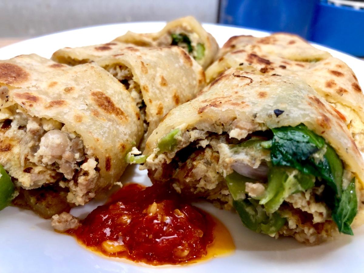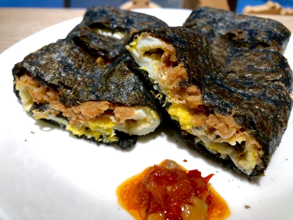 這家位在蘆洲線三和國中捷運站附近巷弄內的小店,算是蛋餅專賣店,最近開始多了吐司麵包🍞系列還沒試過,餅皮有五種可以選,豆乳、艾草、咖哩、紅鞠、竹炭,蛋餅口味總共有10種