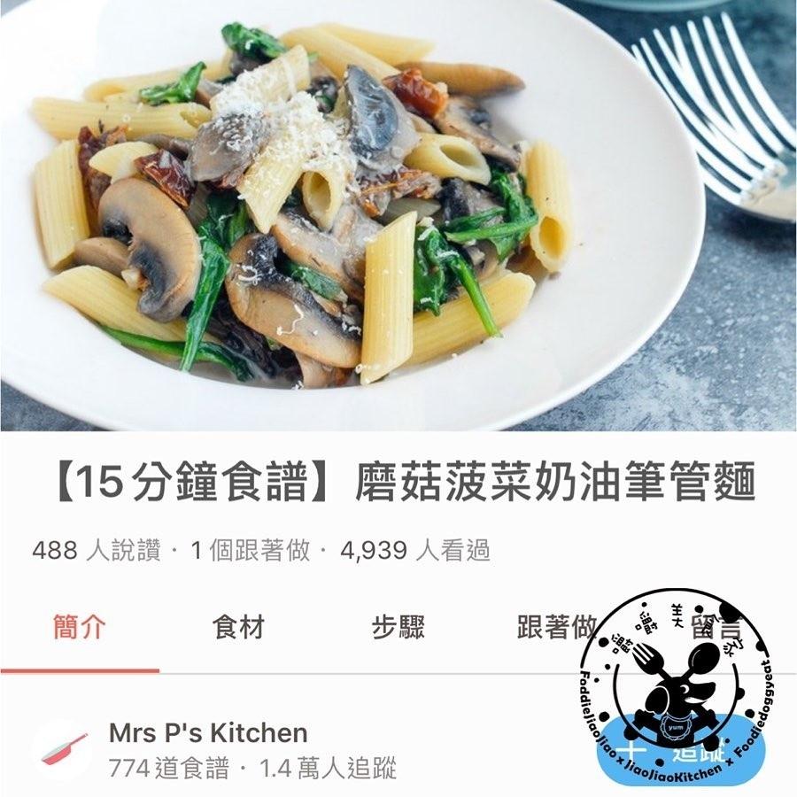【15分鐘食譜】蘑菇菠菜奶油筆管麵 by Mrs P’s Kitchen