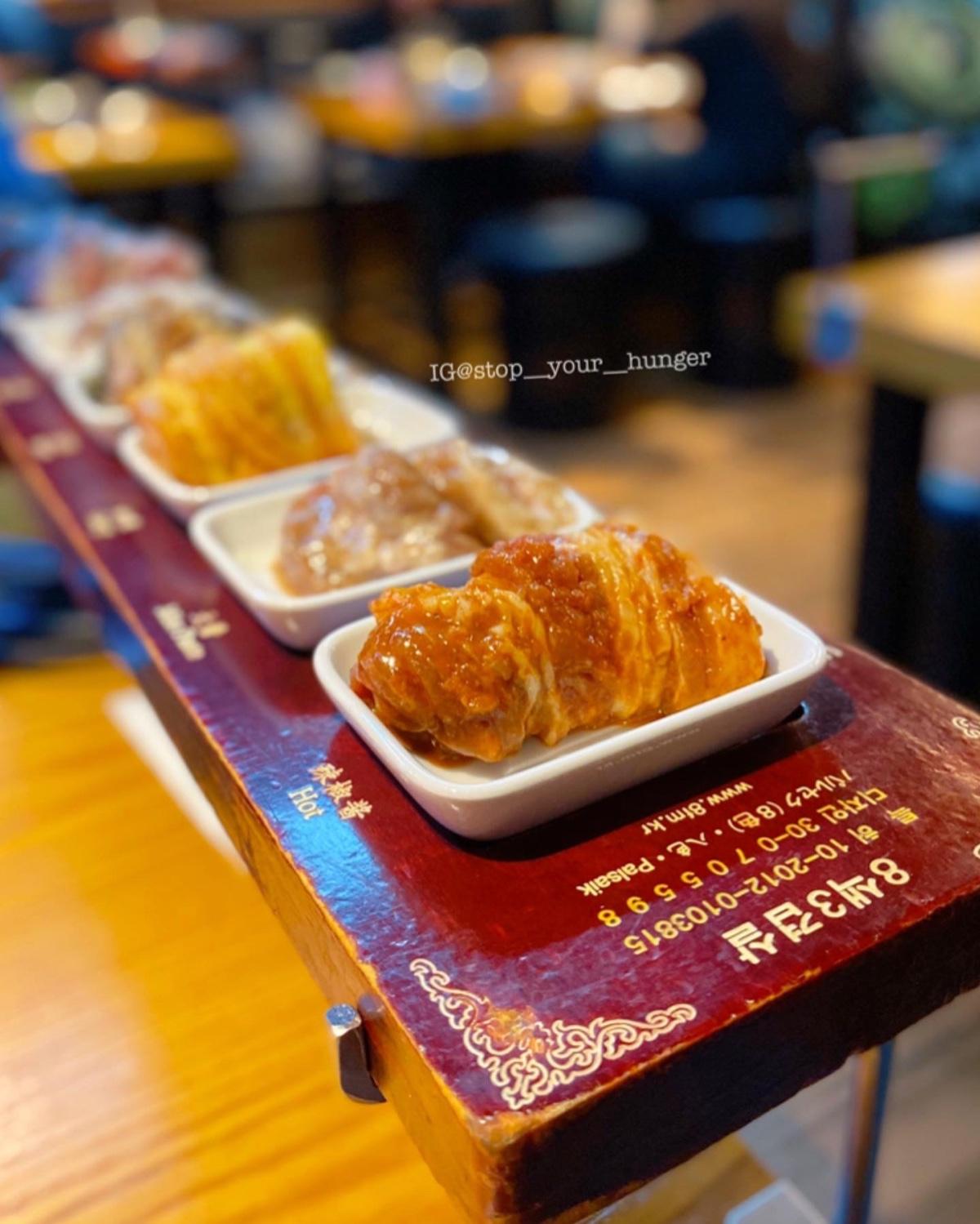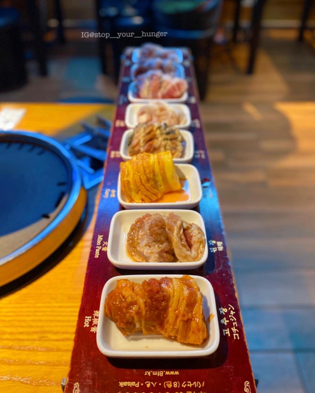 #八色烤肉 顧名思義就是8個口味吃好吃滿啦!從1到8口味依序由清淡到重口味,要順著順序吃,店員下肉時也會特別提醒👌