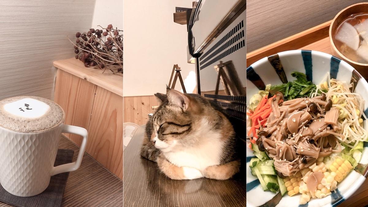 慢慢的等待,也會有好事發生。工作的關係禮拜五都有休假,睡到飽後的我,開啟了搭到終點站的一天。原本打算去另外一家咖啡廳等待晚上的活動,後來不知道是懶惰還是肚子忍受不了,輾轉來到了ㄇㄢˋㄇㄢˋ,其實在這之前每次來恰巧都是公休,或許是上班日店內沒有許多人,卻有種溫馨的感覺,一開始想說座在門口旁可以隨時看看窗外,不知哪來的想法改座在吧檯前,但也慶幸自己選擇吧檯旁,座下來沒多久,店貓就跳到吧台上捲縮在一起,結果整個下午我都跟傻子一樣傻傻的看著牠睡午覺。