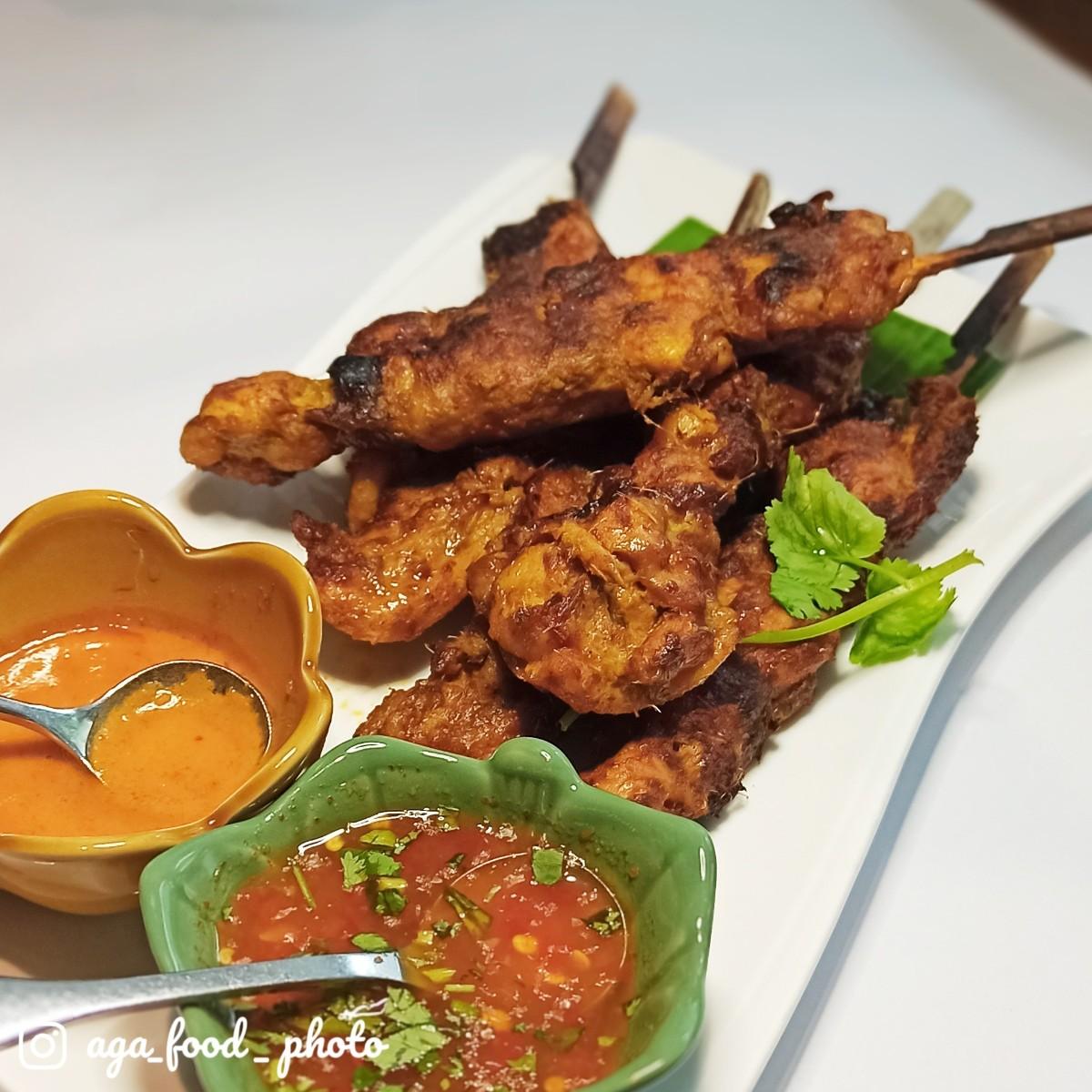 濃濃特殊香料醬汁醃製過,外表金黃焦香,有著香茅香氣及微甜的鹹香味,搭配一旁的沙嗲醬及泰式酸辣醬,又有不同口味的變化