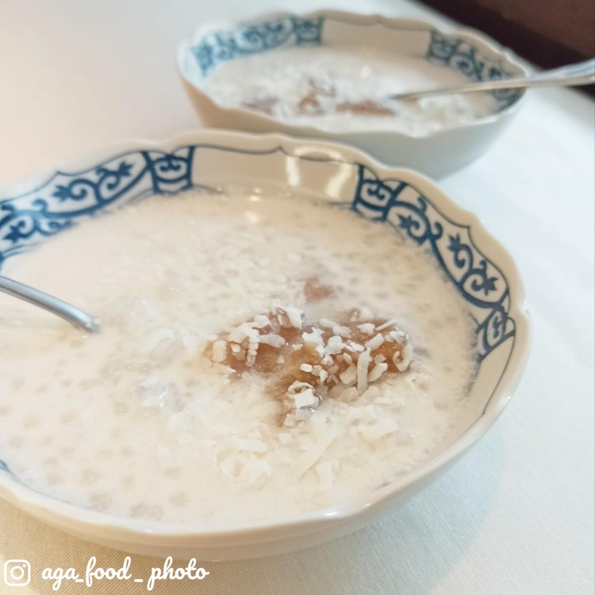 週年慶打卡還贈送甜點,濃濃的西米露有我們喜歡的椰漿香氣,芋頭Q軟入味,也點綴一些椰肉絲增添風味口感