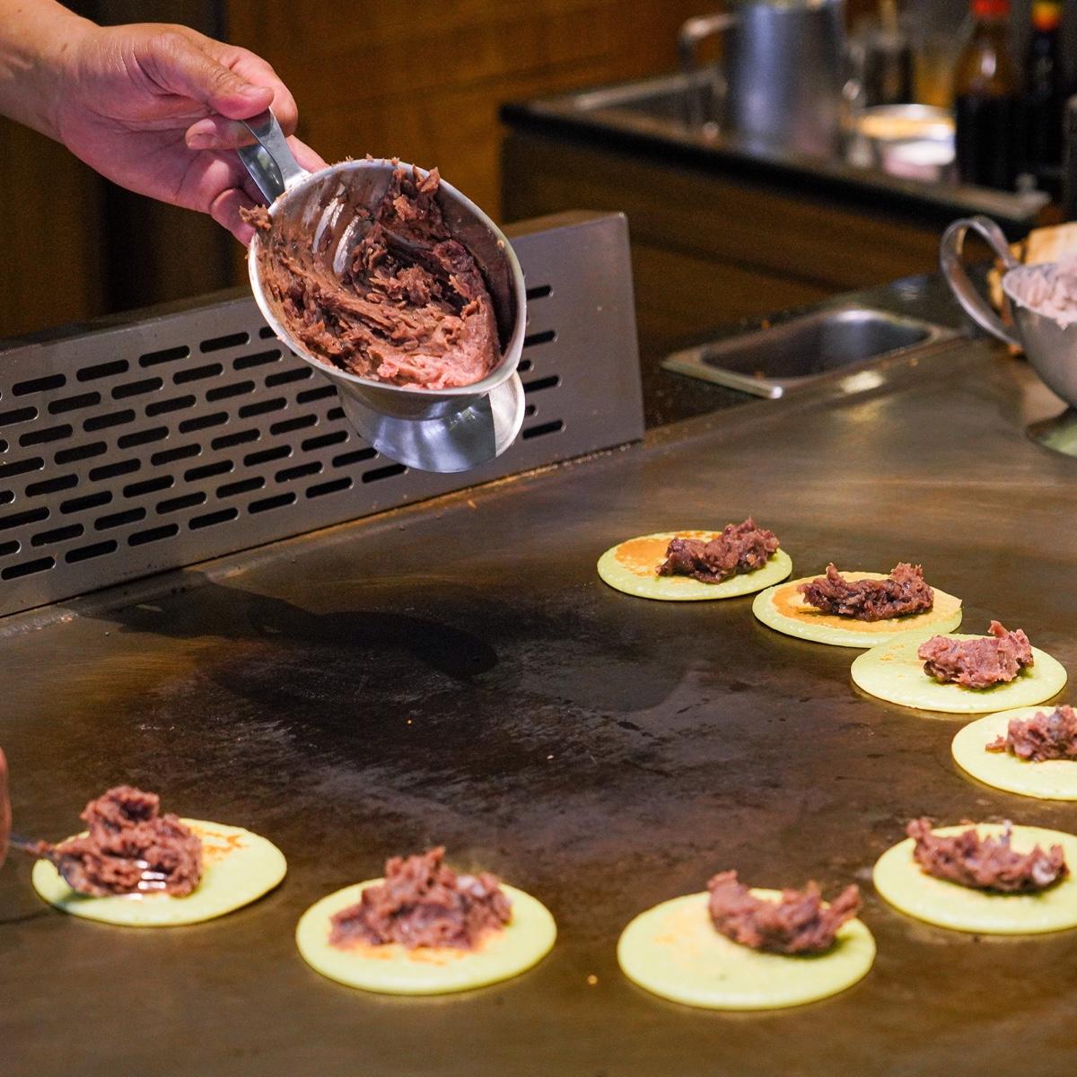 甜點的部分也很奇特 像是日式的銅鑼燒 皮是抹茶口味🍵