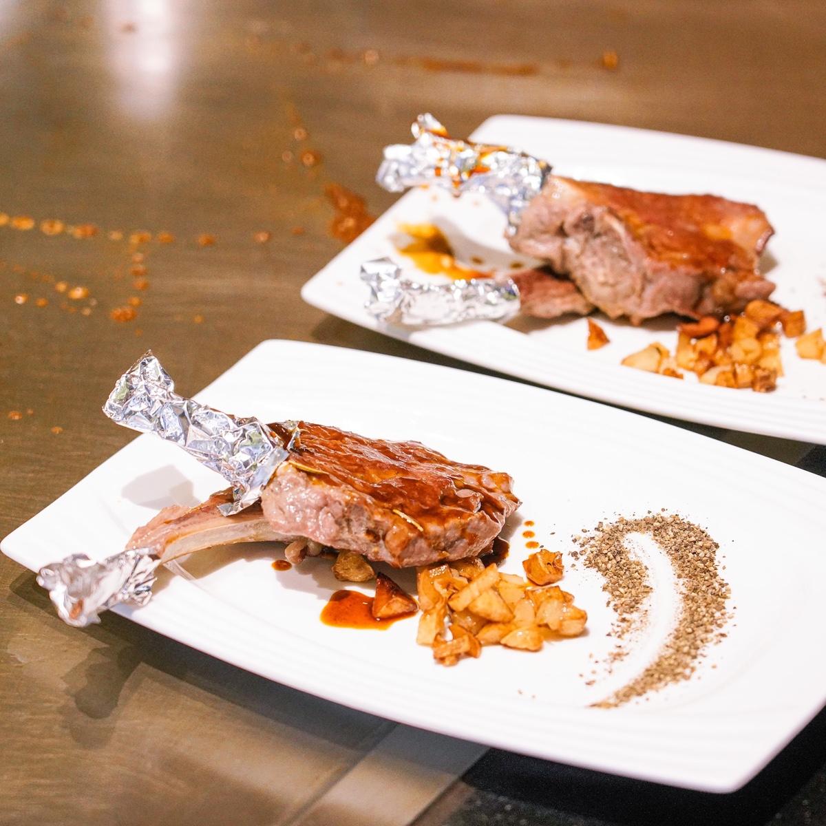 ③主餐:肋眼沙朗牛排、特選小羊排、脆皮雞腿排→3選1