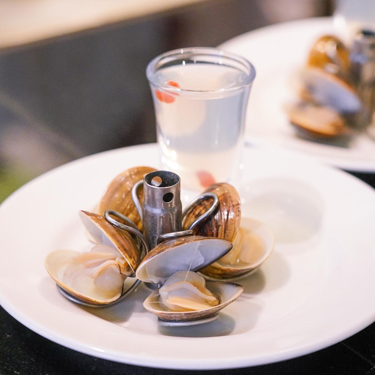一道一道菜慢慢上 師傅會在前面展現他的好廚藝