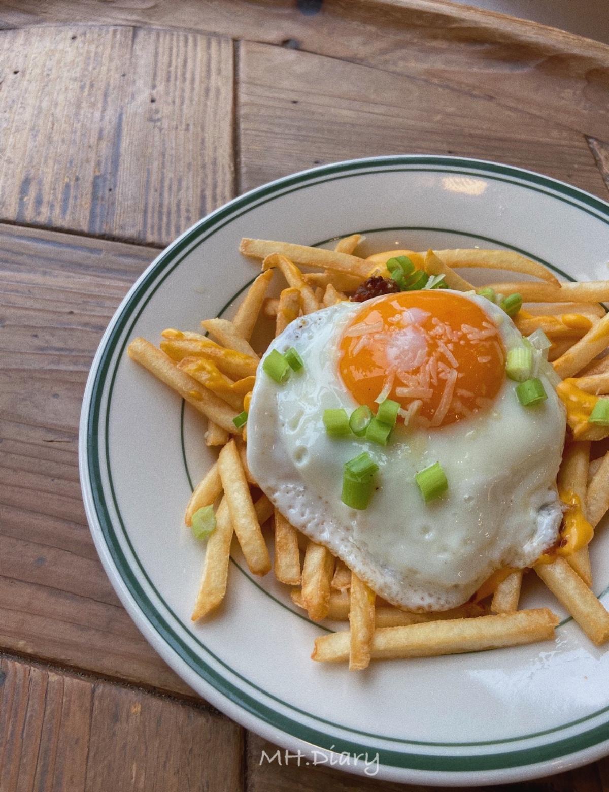 薯條表層是半熟蛋,內裡是肉醬,搭配吃起來很濃郁