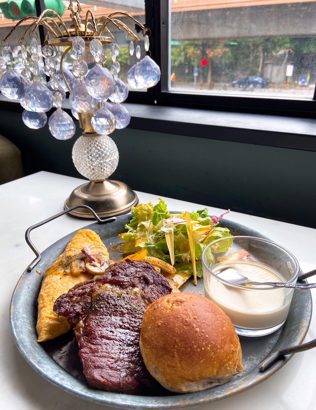 早午餐供應時間是1130-1630,晚上只有販售排餐和麵飯類,在早午餐的時段來就是全部都可以點