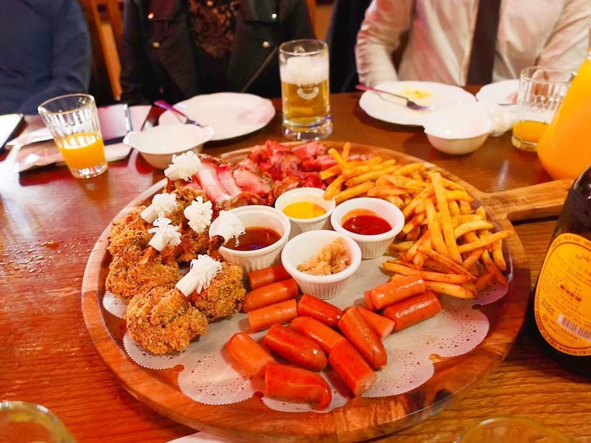 裡面有德國豬腳、歐式香腸、酥炸椒麻雞還有美式薯條