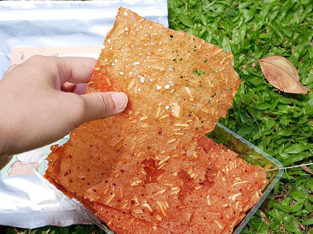 但我就愛那種薄脆口感,咬下卡茲卡茲又帶有豬肉鹹香跟杏仁角的風味,會忍不住想要一片接一片