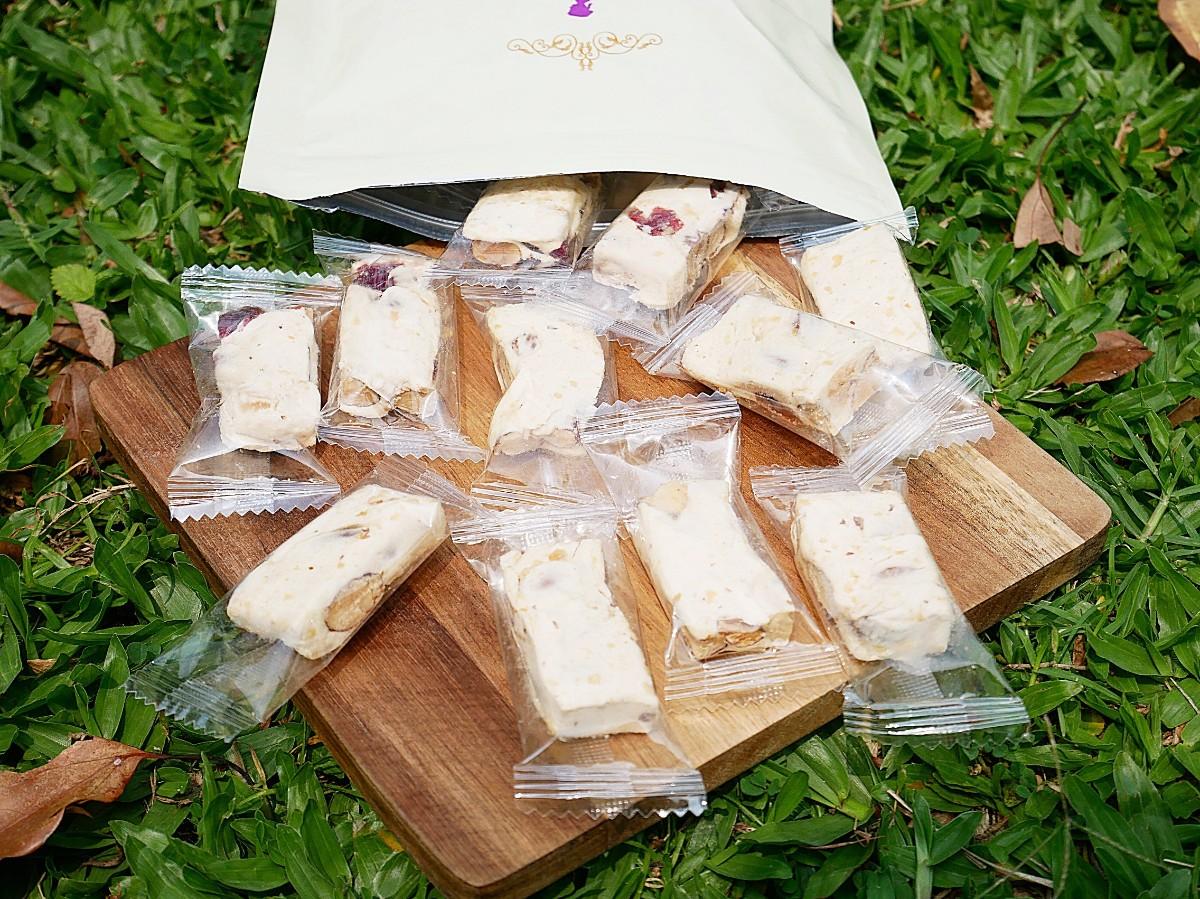 蔓越莓牛軋糖入口微酸,蔓越莓香氣在咀嚼的時候飄散在口中,跟奶香結合超合拍