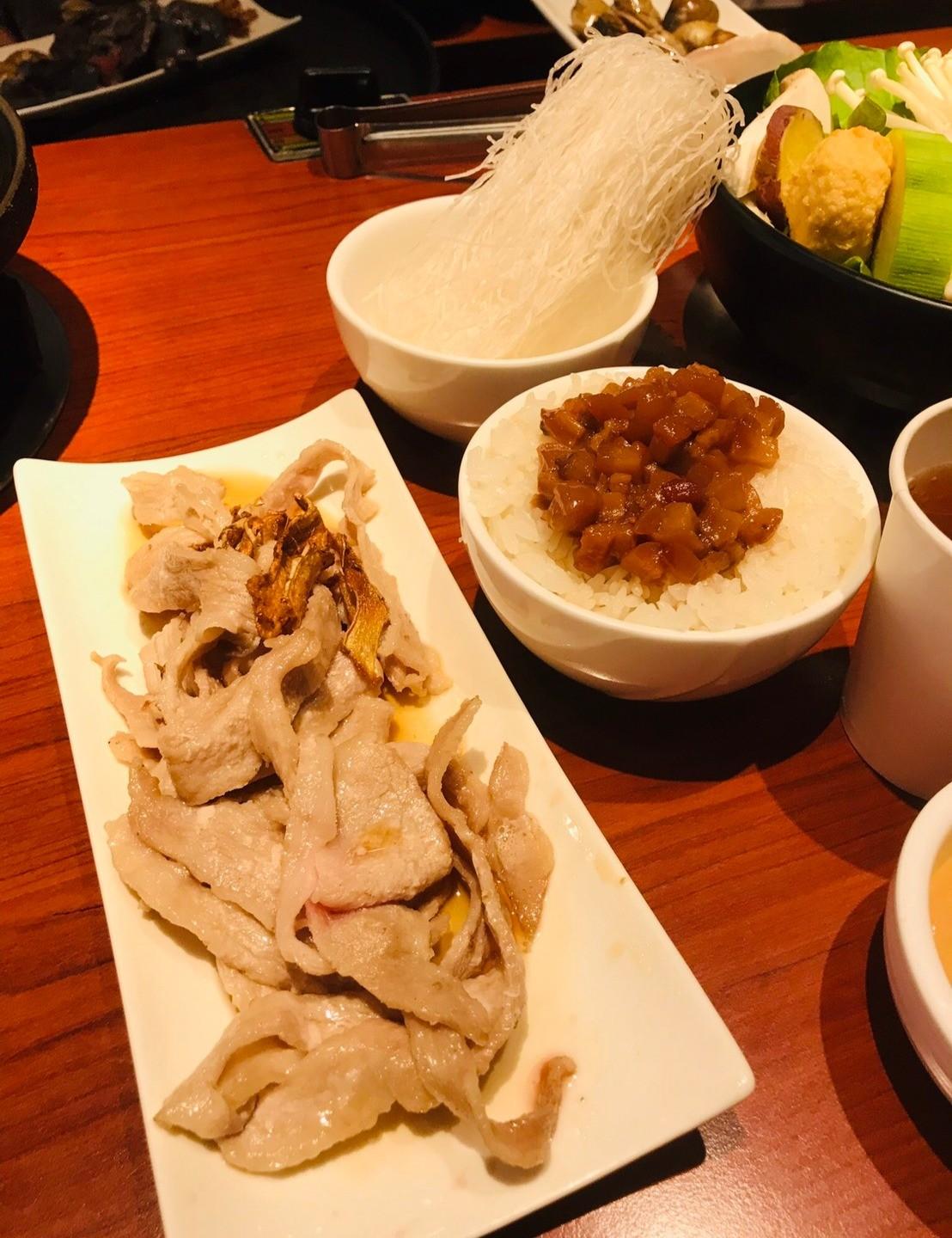 爆炒松阪豬$128 、附餐滷肉飯+$16
