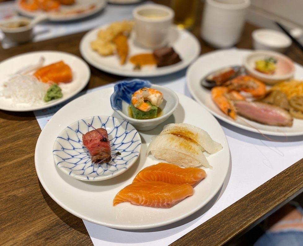 生魚片壽司檯上面的比目魚握壽司,之前都會被搶購一空,這次我吃了快要10個,好開心;不過原本我很喜歡的季節冷盤料理系列都消失了QQ ,以前有生牛肉沙拉、天使冷麵之類的,看來銷量太差都被撤掉了,時代的眼淚😅