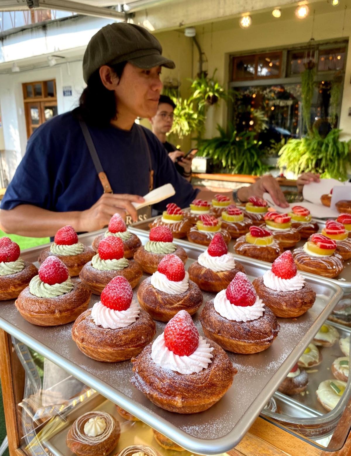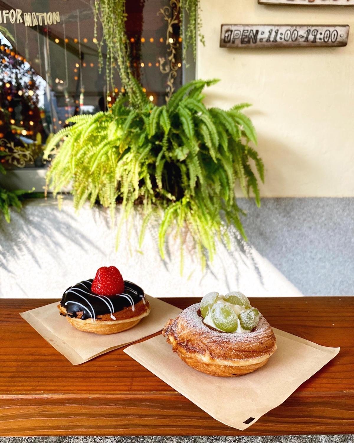 其實甜甜圈單價不貴也還蠻好吃的,#葡萄卡士達 #草莓巧克力草 不會過甜,吃起來說是甜甜圈,我覺得反而比較像傳統牛奶棒的風味,點幾顆拍個照坐一下,我覺得可以😇