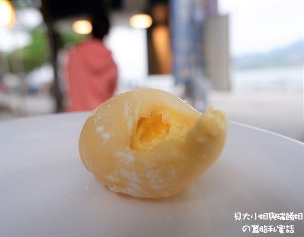 一邊品嚐香濃的榴槤流沙球