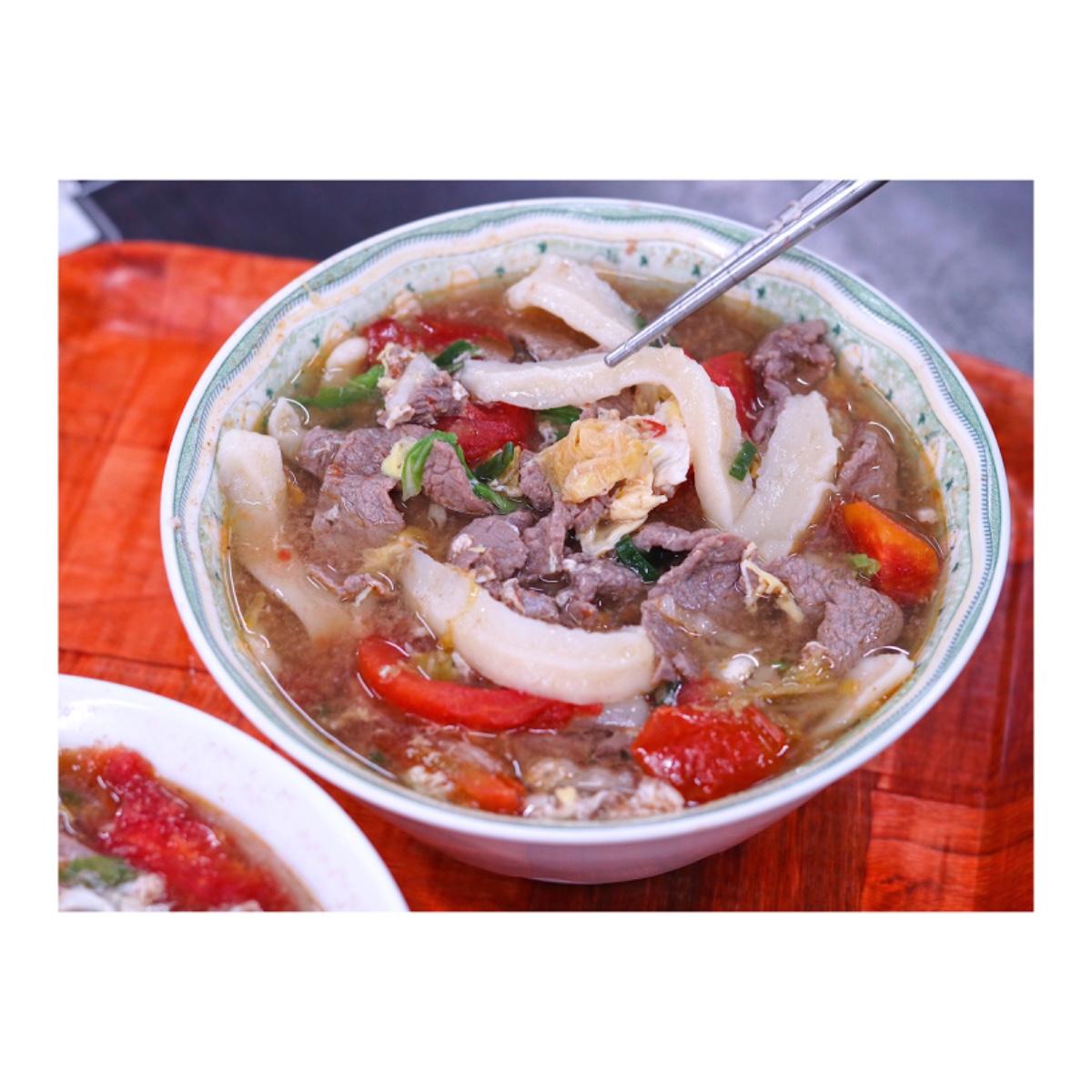 滿滿一大碗,大量的牛肉片、蛋花、青菜和熬煮至熟透的蕃茄,這料簡直比麵還多,很少吃到牛肉麵會讓我們嘖嘖稱奇肉怎麼可以這麼多的!