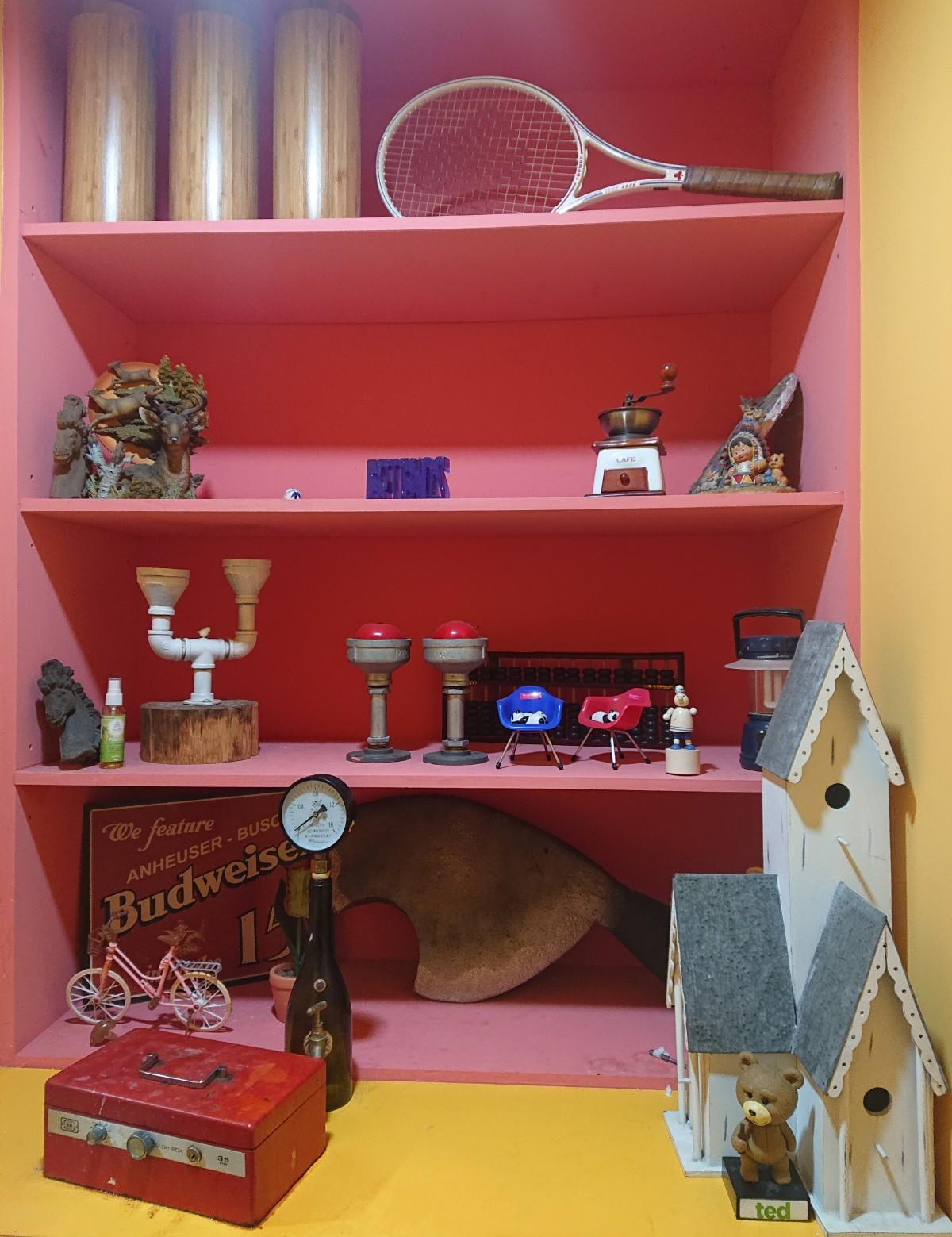 另一面牆是放粉紅色 以女生會使用的東西為主