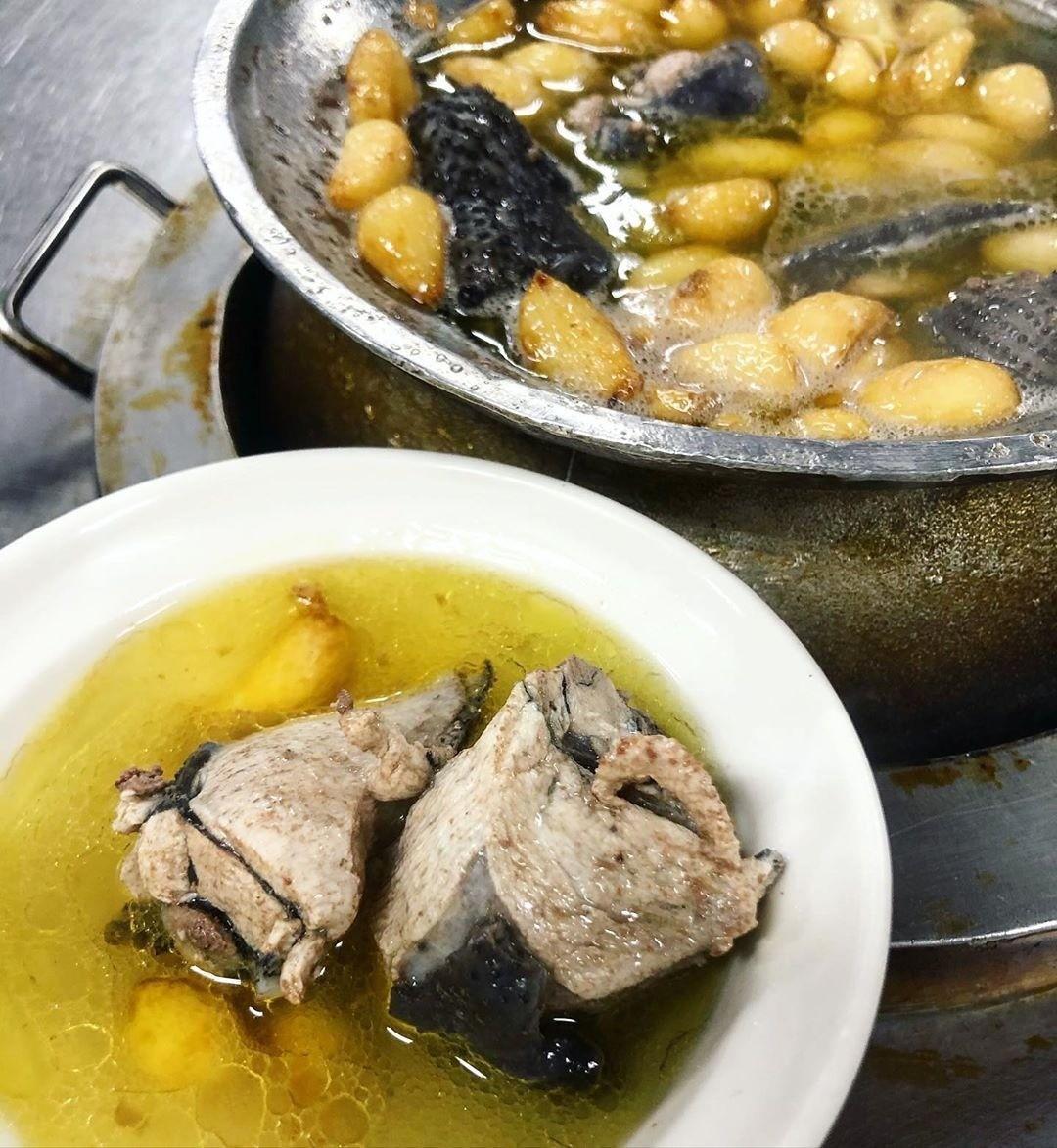 #大道烏骨雞 最近天氣忽冷忽熱,最適合進補壓壓驚 彰化北斗除了肉圓以外 還有許多厲害的隱藏版料理 雖然店面的外觀很不起眼 但是卻是當地老饕的最愛唷。 雞都是老闆自己養的烏骨雞 不使用一般的瓦斯爐,使用炭火來加熱 所以會多了點淡淡的炭香 雞湯都分成半雞跟全雞兩種份量 - 🐔 #蒜頭雞 (全雞) |$900 📝 點評時間 滿滿的蒜頭搭配鮮嫩的雞肉 雞肉的肉質很Q彈 蒜頭已經熬煮到不會有嗆辣感 而且已經是入口即化 湯頭很鮮甜滑順而且帶點淡淡的炭香 算是比較清淡的進補湯品 - 📌 大道烏骨雞 | 彰化縣 • 北斗鎮 🈺️營業時間:16:00-24:00 📮地址:彰化縣北斗鎮復興路566號 📞電話:04-8884732