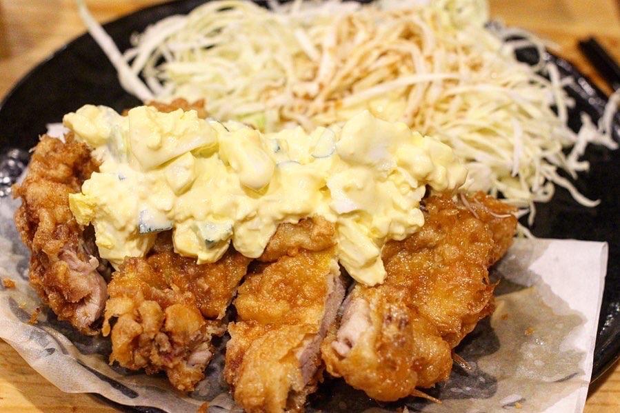 南蠻雞是宮崎縣的雞肉料理,雞胸肉經過醬汁醃漬後下去炸,上面鋪滿了西餐的塔塔醬,信這邊的南蠻雞上面淋滿的蛋沙拉醬,讓多汁的炸雞胸肉上減少一些油膩感