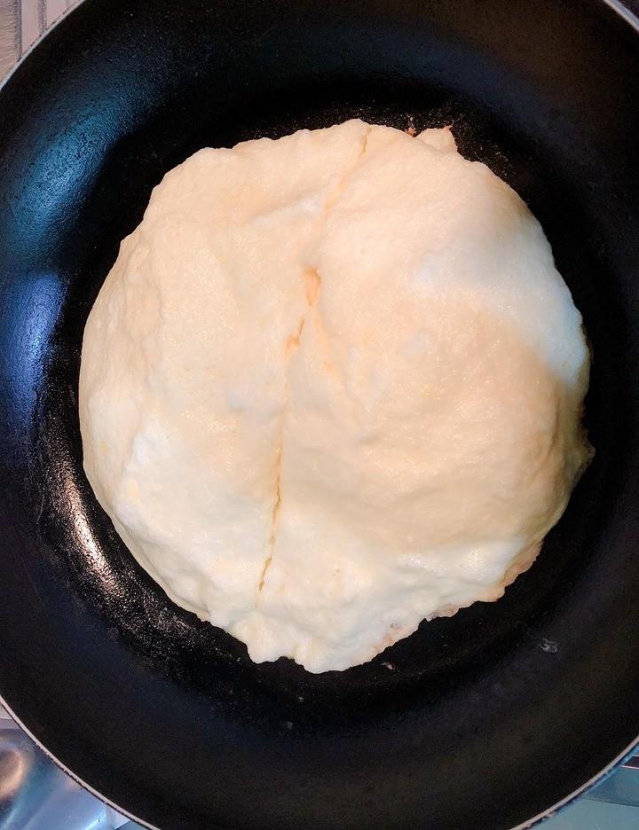 6.在歐姆蛋中間用鍋鏟切一刀,慢慢的對折,再兩面各煎1-2分鐘即可完成!