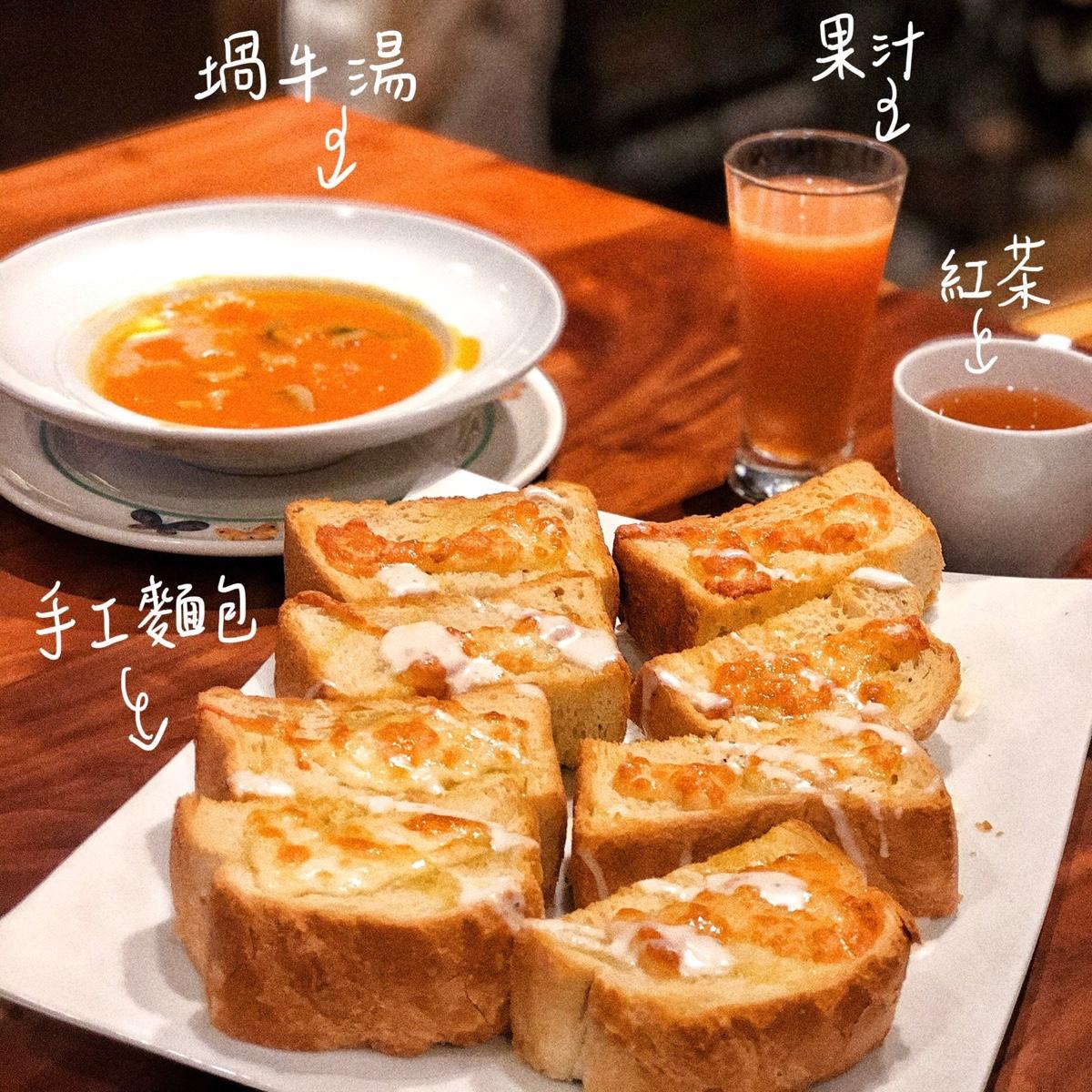 有新鮮果汁/咖啡或紅茶/主廚濃湯/手工麵包/可麗露或冰淇淋