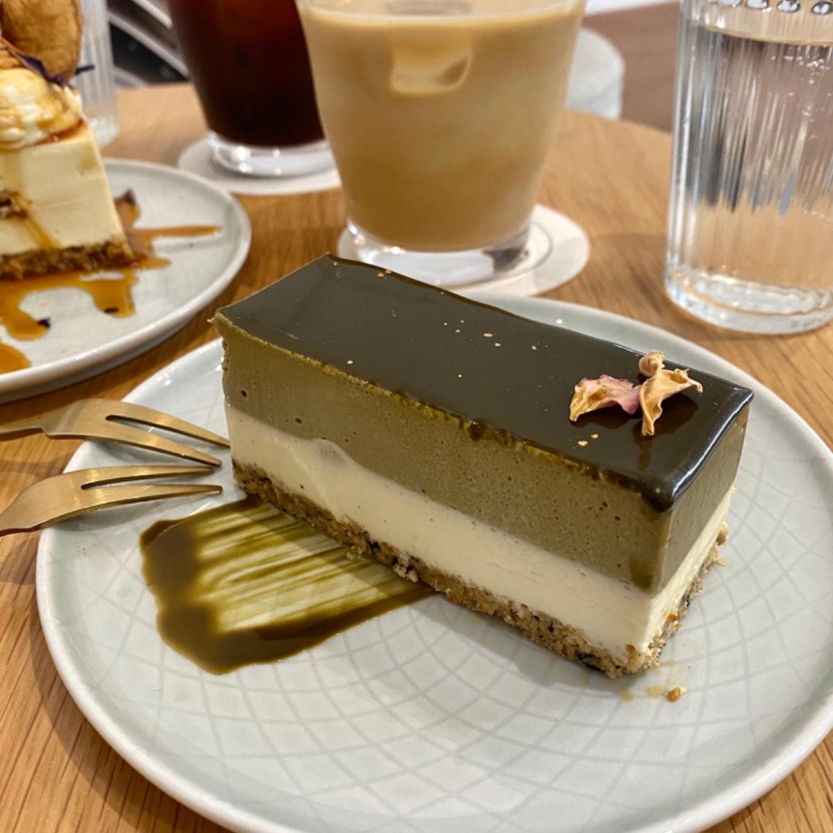 這款應該是店裡最熱門的,吃了之後終於知道為什麼了,生乳酪吃起來十分滑順且綿密,奶味很重卻不會膩,中間夾了一層焦糖蘋果丁,除了為整體帶來了驚喜感之外,也讓整體口感更加清爽且十分圓融,焦糖的香氣沒有到很重,但主要是增加整體的香氣,上面放著蘋果脆片,發現一口蘋果脆片加上一口生乳酪蛋糕,口感及味道都大大升級,是個會讓人想一直回購的蛋糕!