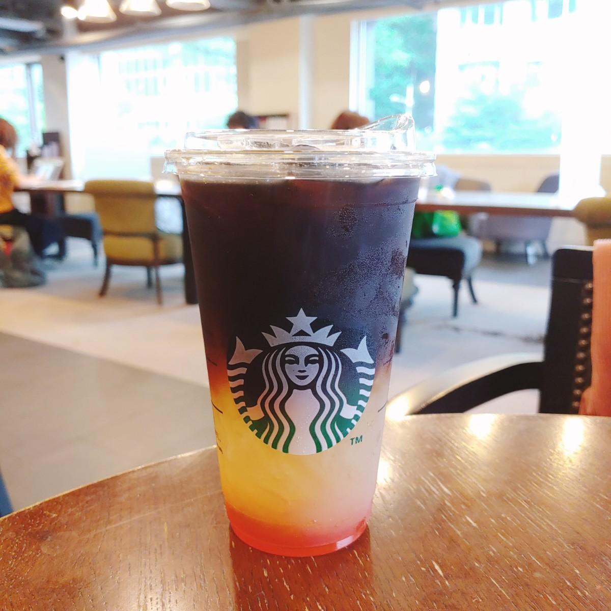 星巴克漂亮漸層色咖啡☕香檸蜜柚冷萃咖啡👍