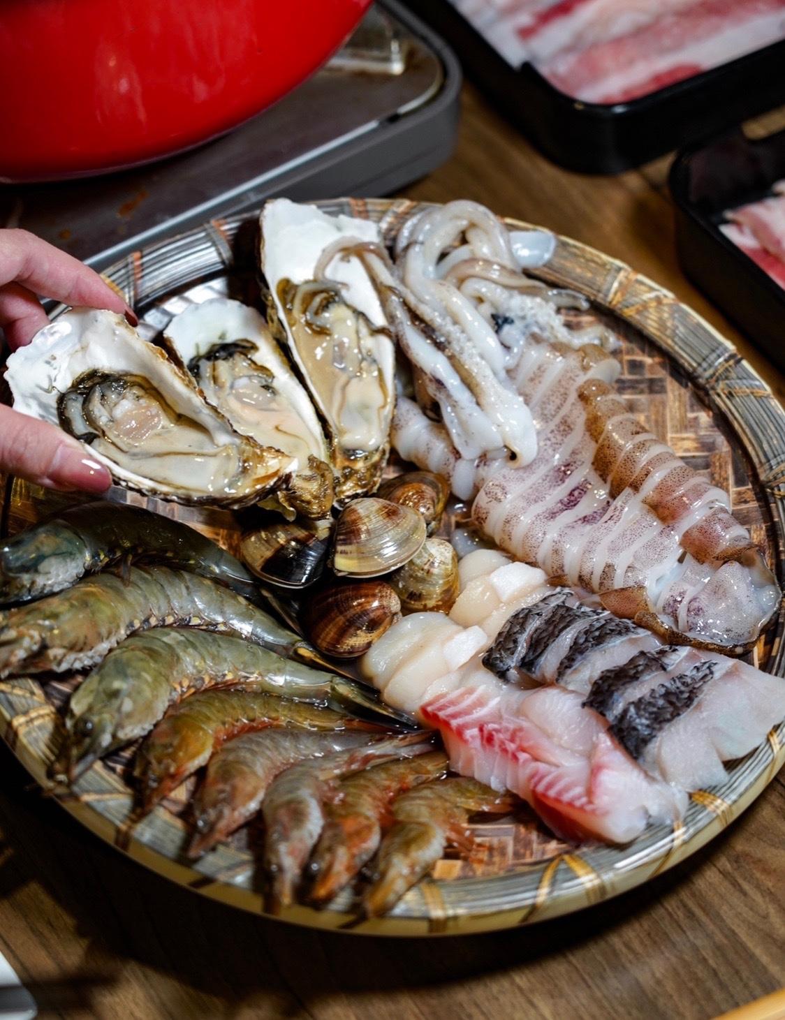✔️海鮮總匯$980:是多種海鮮組合:有草蝦🦐、北海道干貝、牡蠣、鯛魚🐟、鱸魚、蛤蠣、軟絲 ,每一樣都非常新鮮飽滿👍,是火鍋不可或缺的角色。