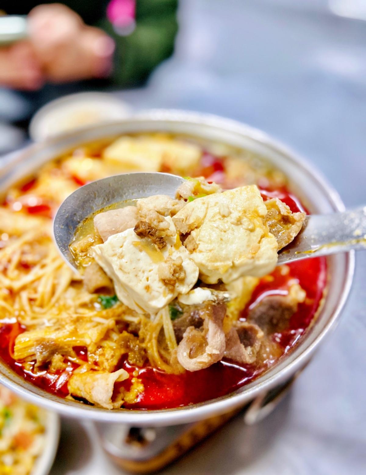 必點的麻辣臭豆腐,大紅的湯頭其實不會很辣,小麻小辣的鹹香帶甜位,淋上白飯更是讚,佑佑先生喝了好幾碗,而臭豆腐軟嫩入味,加點肉片及火鍋料一起搭配吃超級爽~而意外點了一盤炒飯也竟出乎我意料,蠻大一盤只要60元且粒粒分明超香超有味👍,這家已經納入我以後來新竹必吃的名單了~夜晚po個美食文~希望不會太罪惡😜~真心推薦分享給大家❣️