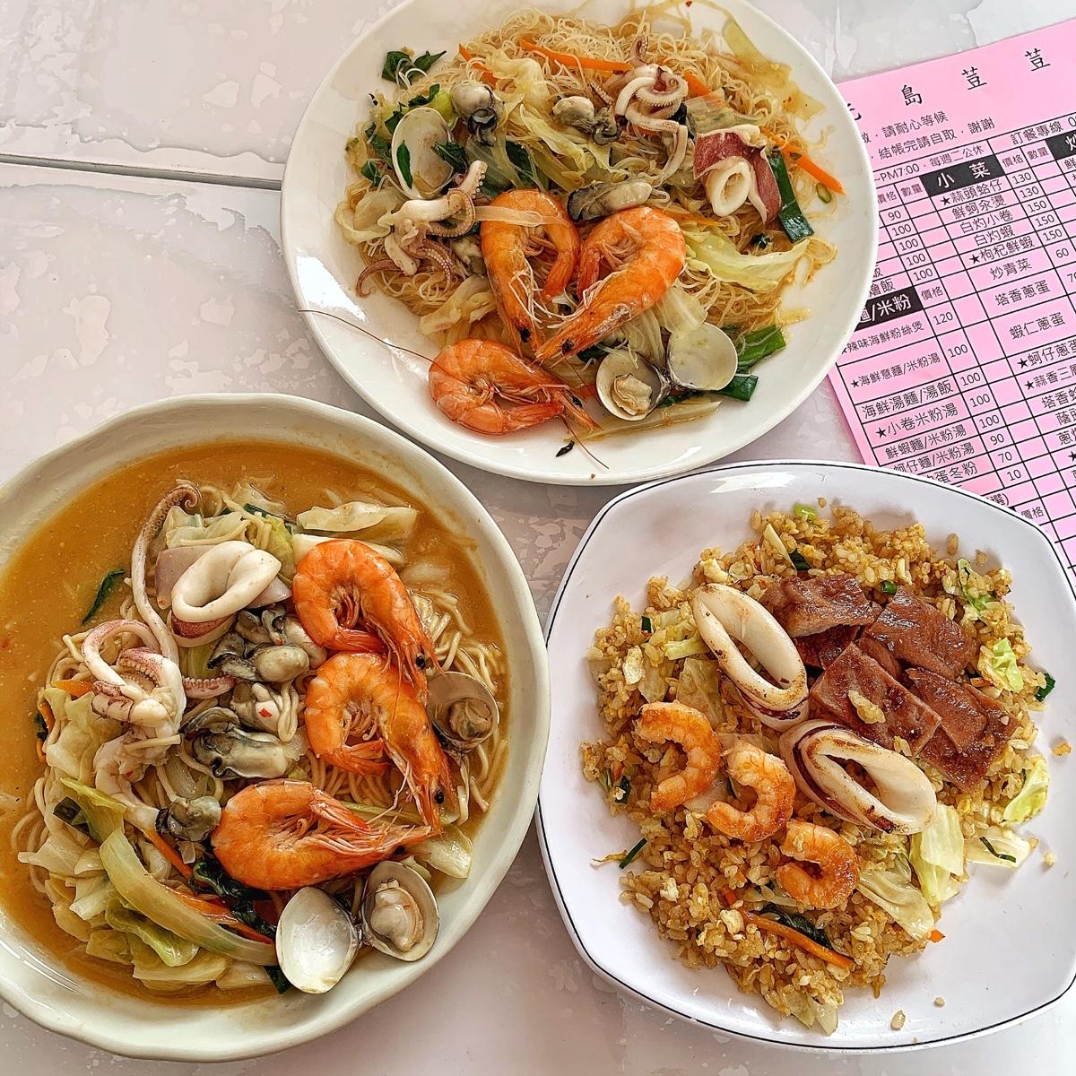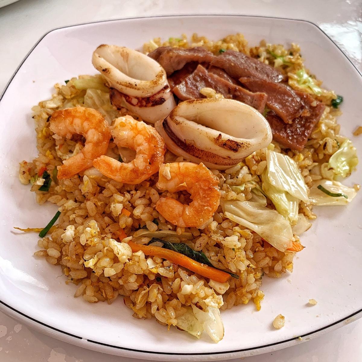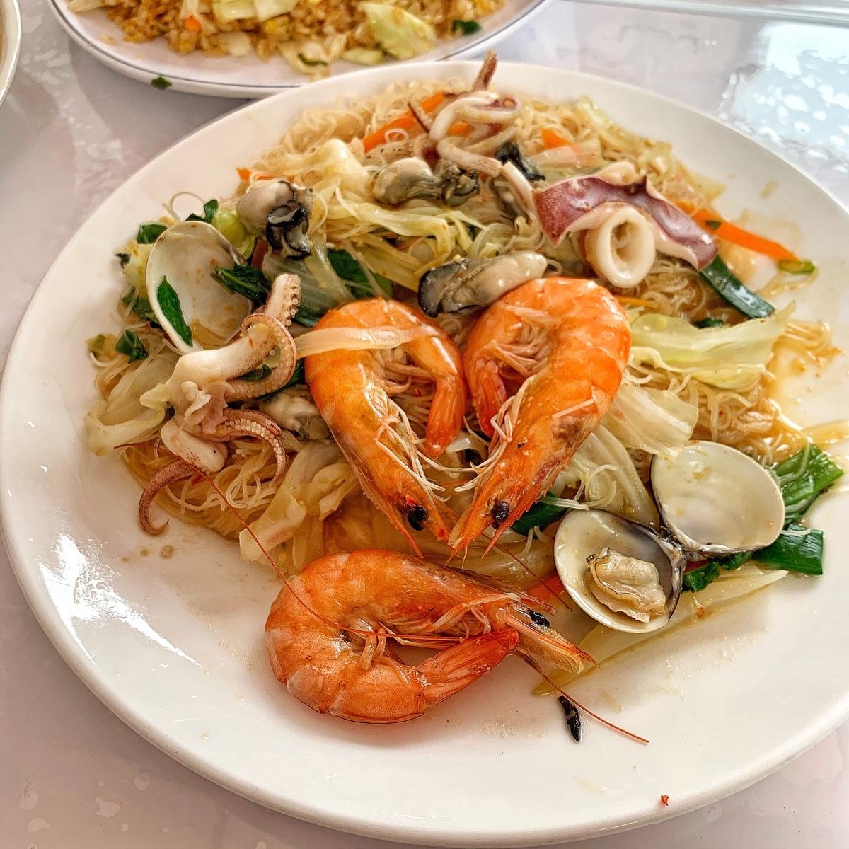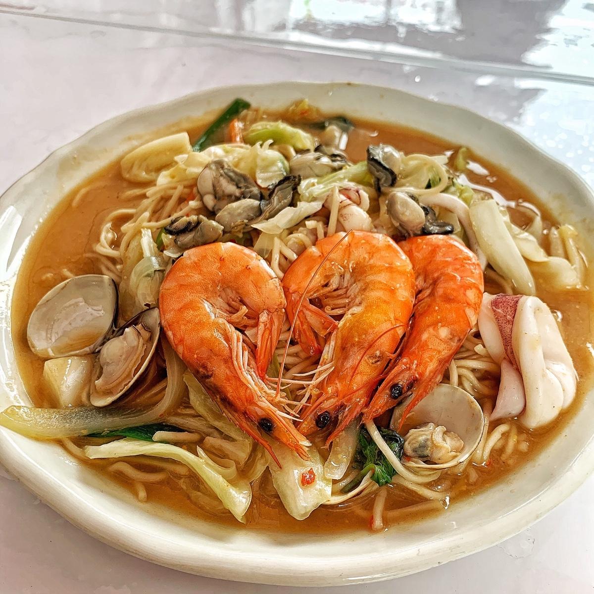 泰式辣醬海鮮總共有三種不同組合,可以做米粉/炒麵/炒飯,所以我們各點了一份,內容很豐富吔,有蝦🦐、蛤蠣、小卷🐙、蚵仔,用餐環境還蠻寬敞的,但人很多,要小等一下而以🥳