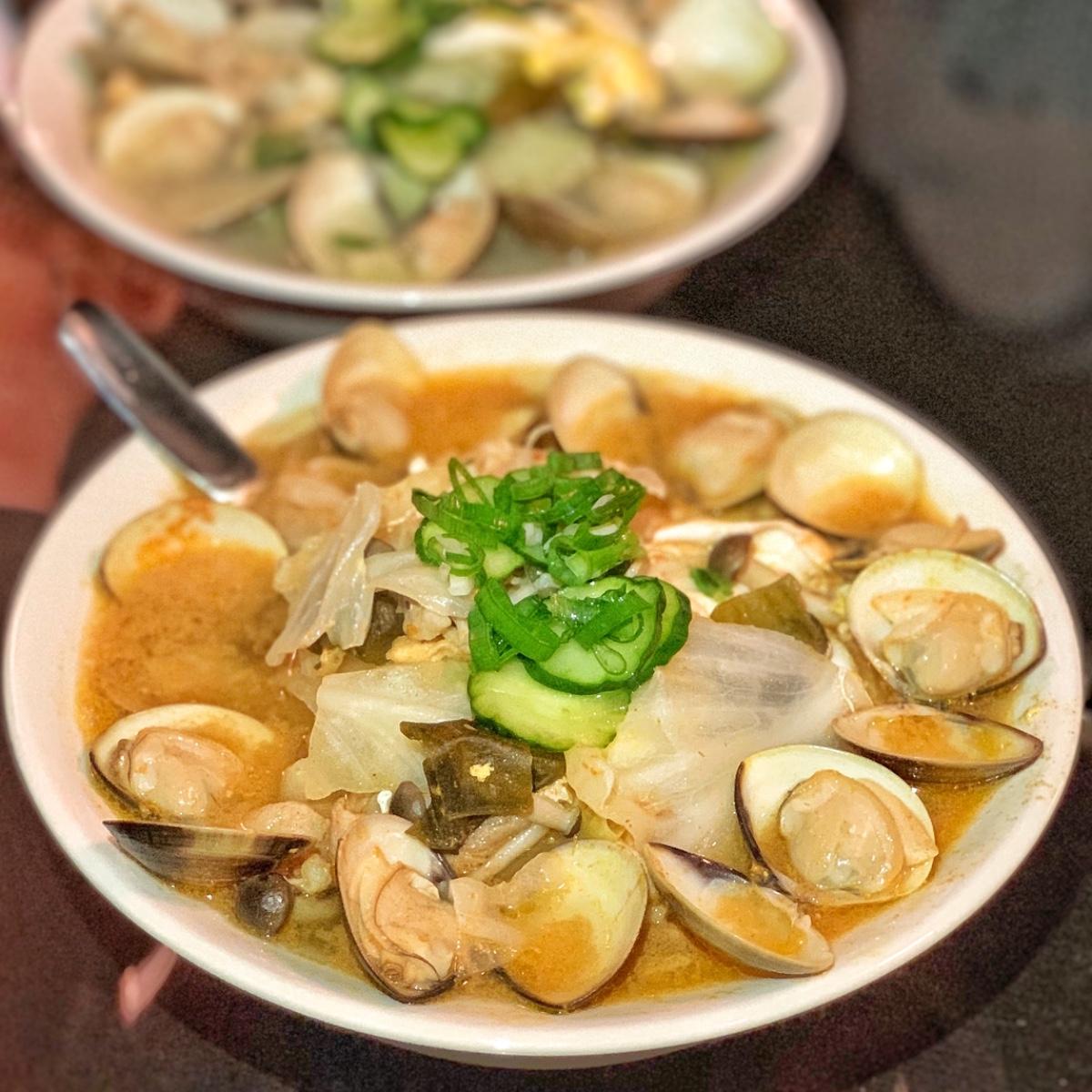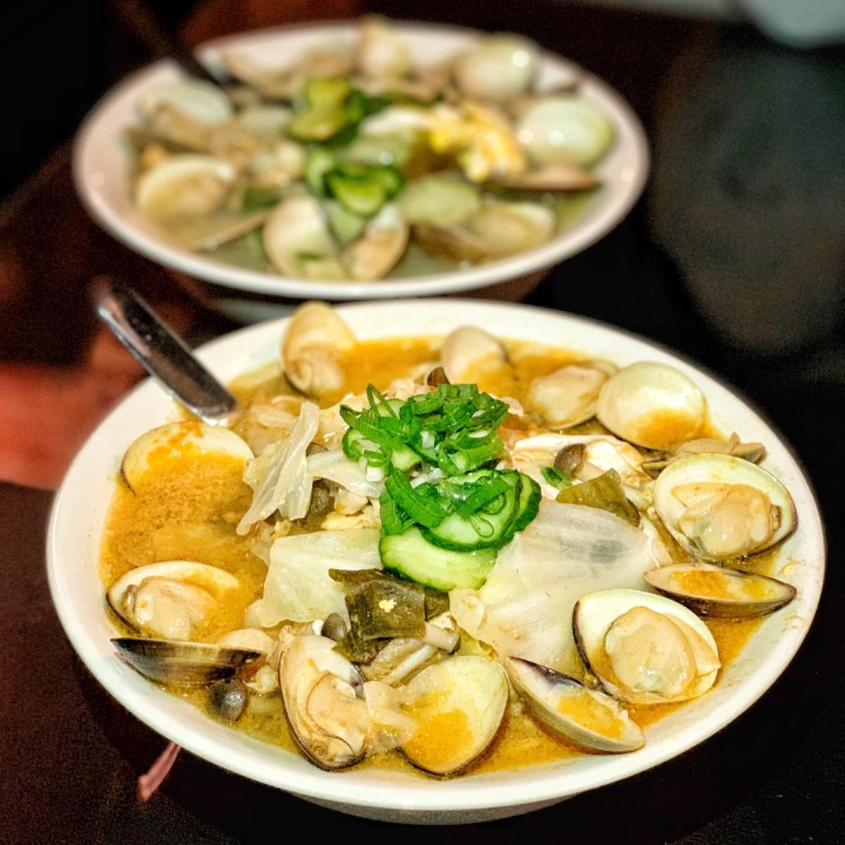 鍋燒皆沒有火鍋料,只有加上肥美蛤蜊和蔬菜,原味湯頭嚐起來很鮮甜。南洋酸辣有滿滿椰奶香,湯頭的辣度大概只有小辣或微微辣,麵條十足吸飽湯頭,每口都有南洋風味,這口味如果能在辣一點酸一點會更好🥺