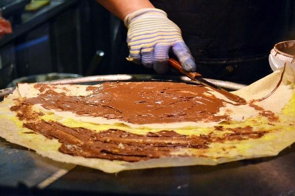 有吃過金莎巧克力,沒看過用這樣大量抹在餅皮上的,太強大啦!店家不惜成本在下料,最後還加上生菜,令人不禁心想:「巧克力可以加生菜?」,ㄟ.....很可以耶!