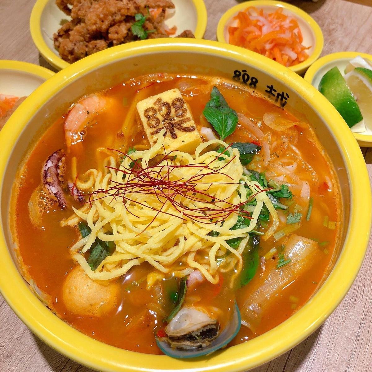 越式酸辣海鮮河粉的湯頭帶有點辣味🌶有著香茅和檸檬葉的香氣,喝起來順口😍辣度適中,不會卡喉,配料上也相當豐富,鮮蝦、魷魚、淡菜🦐再加上樂越招牌的樂字豆腐,一碗吃下來相當飽足✅