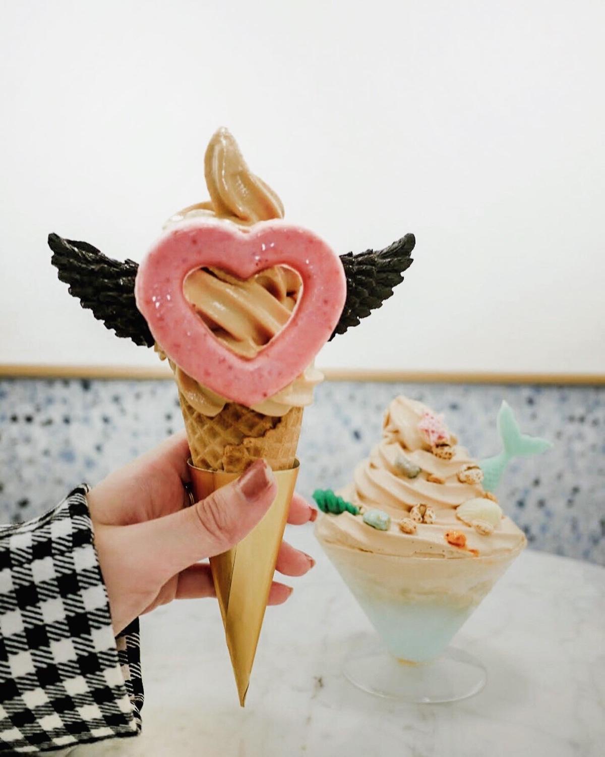 紅茶霜淇淋配上翅膀.草莓愛心巧克力,霜淇淋口感綿密札實,茶香很濃!