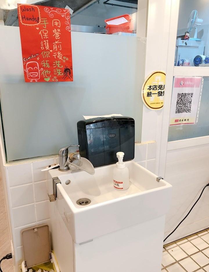 店家很貼心的有準備洗手台讓大家餐前餐後勤洗手,在現在這種非常時期尤為重要,店裡還有其他招牌餐點,喜歡吃辣的朋友可以嘗試鬼椒起司肉蛋吐司,也有比較色別的檸檬馬告雞肉蛋吐司,或是像披薩一樣的蛋餅也很值得大家來嘗試看看喔!