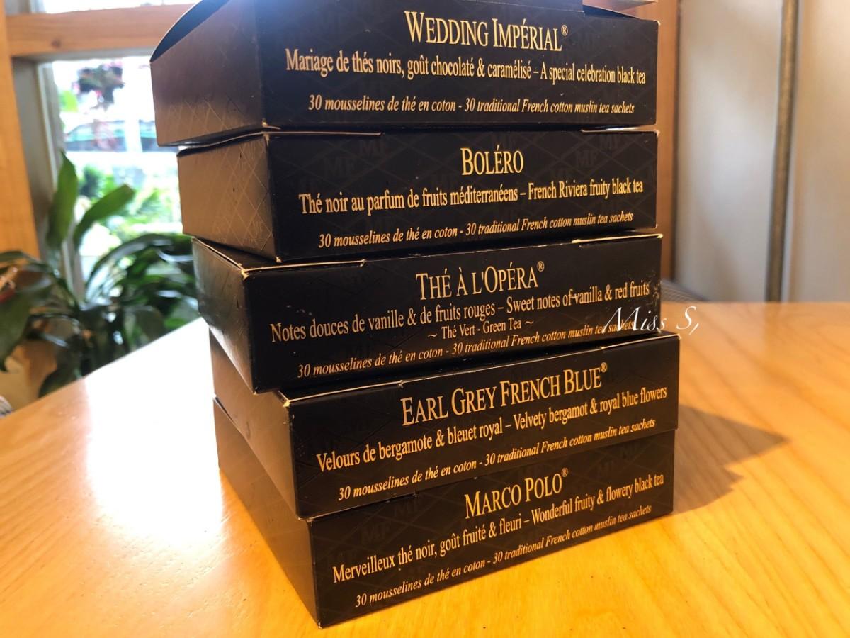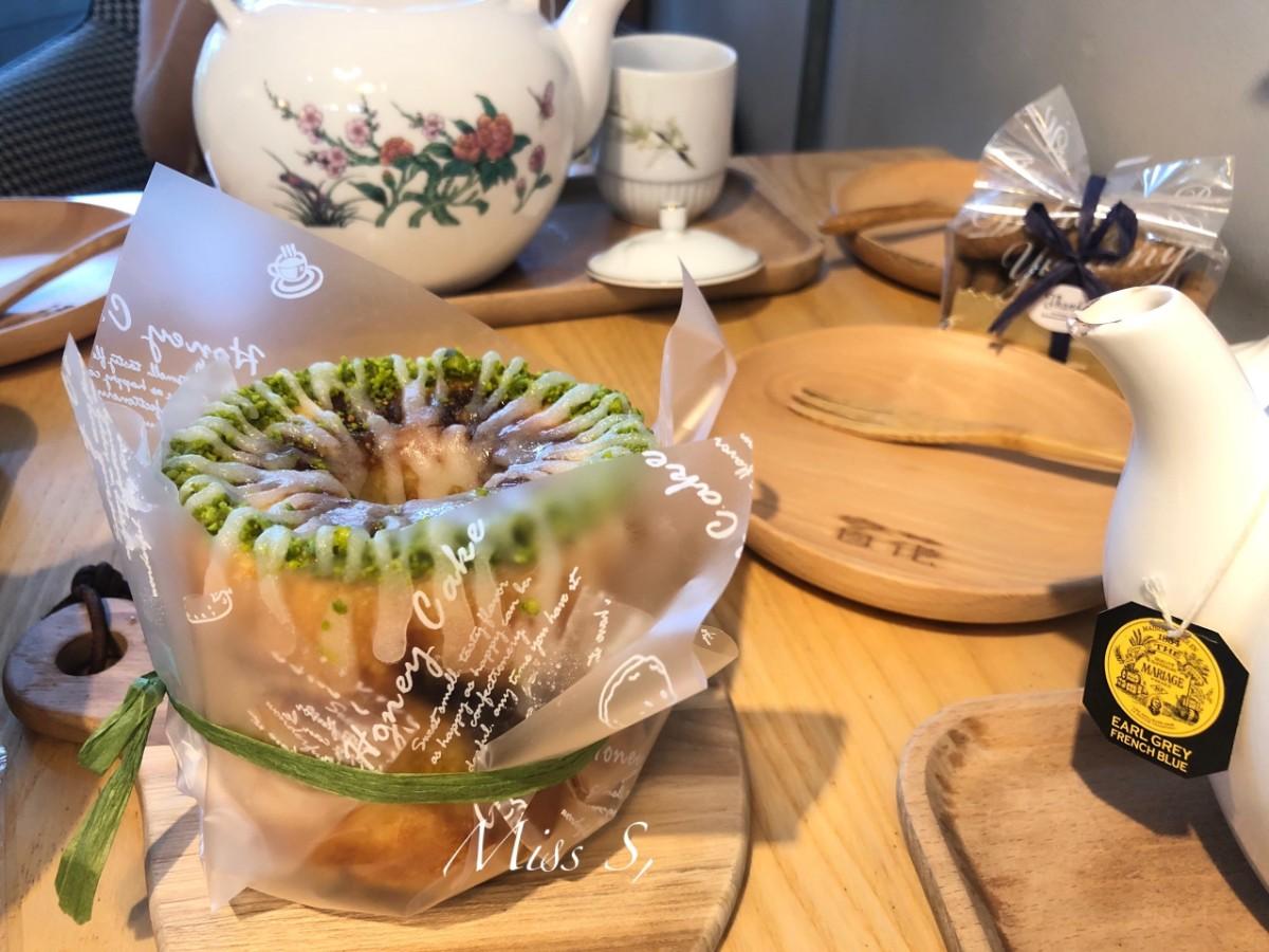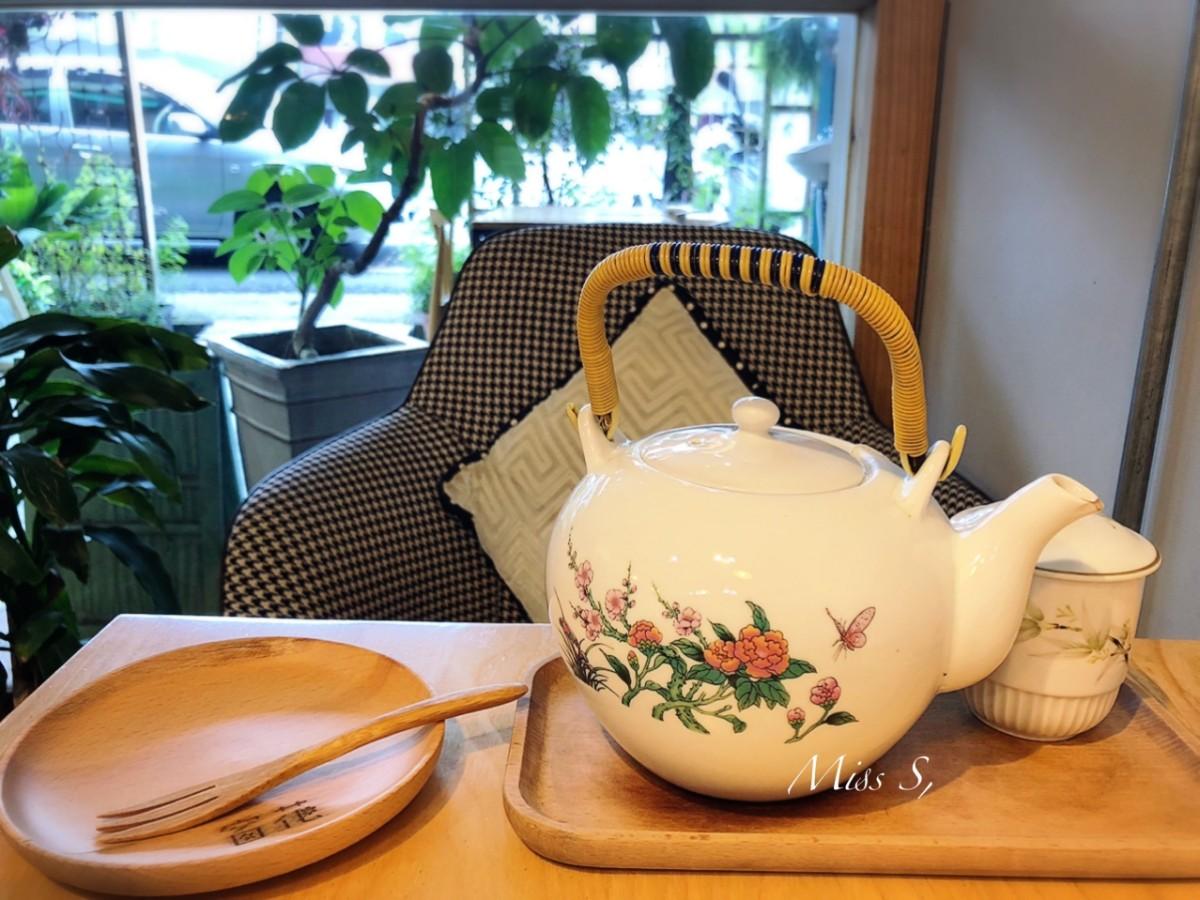 提供自製蛋糕、法國百年品牌瑪黑茶,還有每天新鮮出爐的吐司(每次口味不同)可供預訂,這裡的點餐方式是無菜單的,端看當天店家提供哪些蛋糕,只可惜這一天下午甜點剩下不多,於是點了較特殊的無花果磅蛋糕。瑪黑茶的部分,由老闆娘親自介紹每一個口味的特色和味道,最後以聞香的方式選擇自己喜歡的,我點了法式藍伯爵,味道充滿層次,入口時有一種輕柔感,在茶香中隱隱透著淡淡的佛手柑清新、矢車菊的花香,非常好喝。無花果磅蛋糕的份量大約適合3~4人一起食用,甜度不高,用料實在,或許也是這間店受歡迎的原因之一。