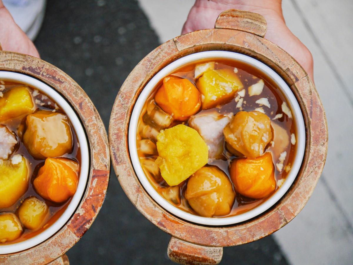 豆花用木桶來裝真的很特別,看起來別為可愛,裡頭有芋包、薯包、芋圓、薯圓、珍珠等等配料與豆花,真的超喜歡芋包薯包咬開爆漿的口感與香濃的芋香薯香,豆花吃起來較綿滑,很讓人喜歡