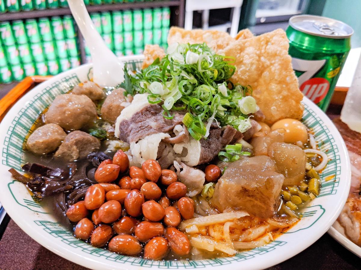 喜歡吃牛肉的絕對不能錯過這口味!滿滿的牛肉片(不會吃兩三口就沒了),還有牛筋、牛肉丸,他們的牛筋燉的非常軟嫩夠味,牛肉丸也是非常濃郁的牛肉味,不會感覺都是粉漿製成的!再配上他們滿滿的配料,有我最愛的酸筍、酸豆、木耳,硬花生、炸腐竹、鵪鶉蛋,必須說我覺得料都比米線還多了,真的是超級有誠意的一碗!必須說看到餐點送上來的當下我真的傻眼了,超級豐富超級滿!湯頭的部分微酸微辣,喝起來酸酸辣辣清爽開胃!