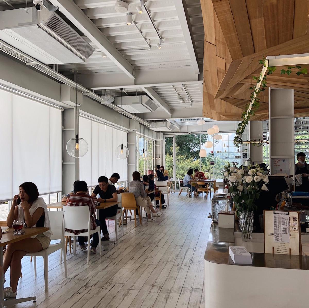 偌大一棟的絕美玻璃咖啡廳「蠻荒咖啡」,除了一樓主座位區以外,二樓也有不少座位,但當天是沒有開放的。由於「蠻荒咖啡」目前是採現場叫號方式候位,建議可以先打電話過去詢問現場等候狀況。若是開車也不用擔心,咖啡廳外停車位算多,停車相當方便。