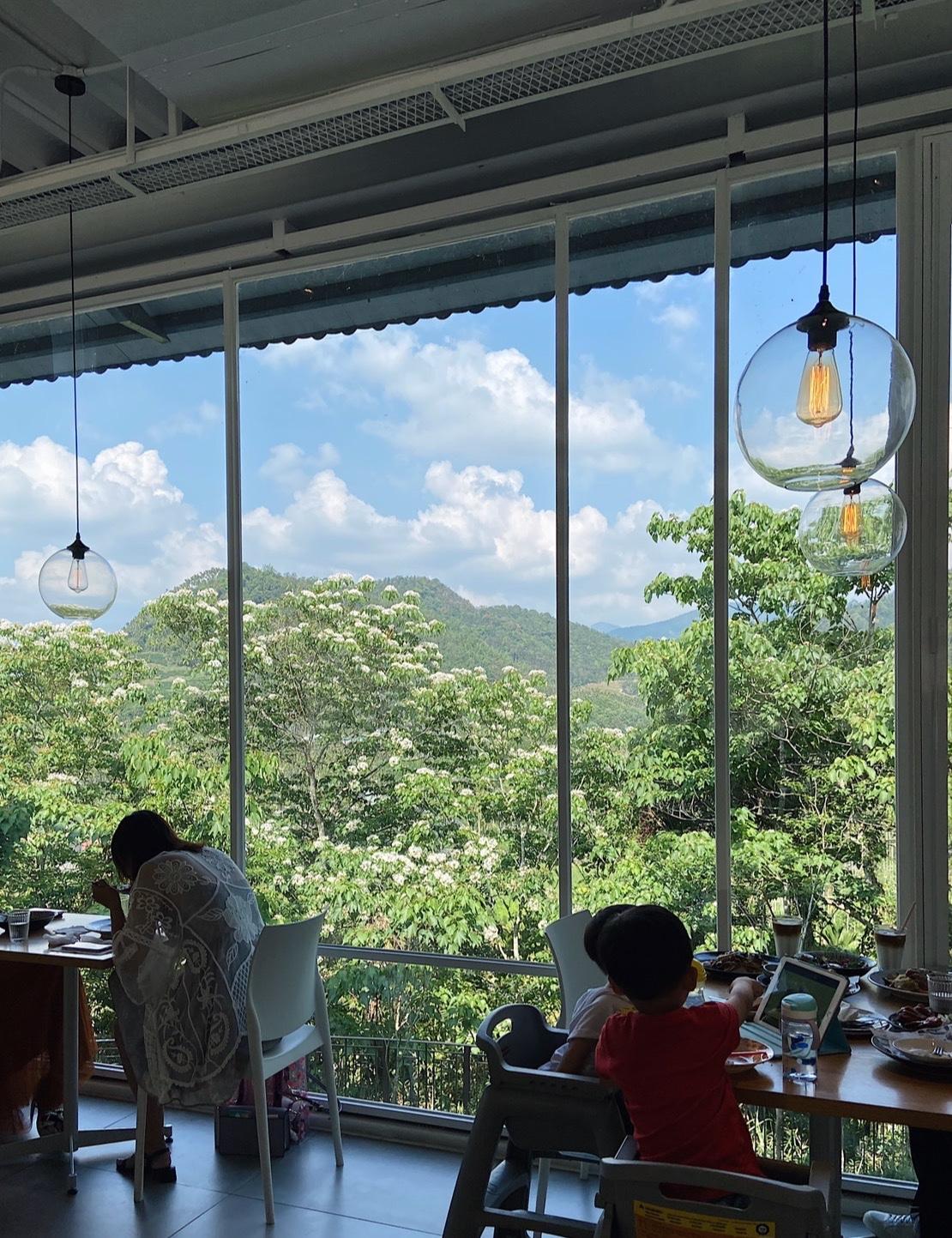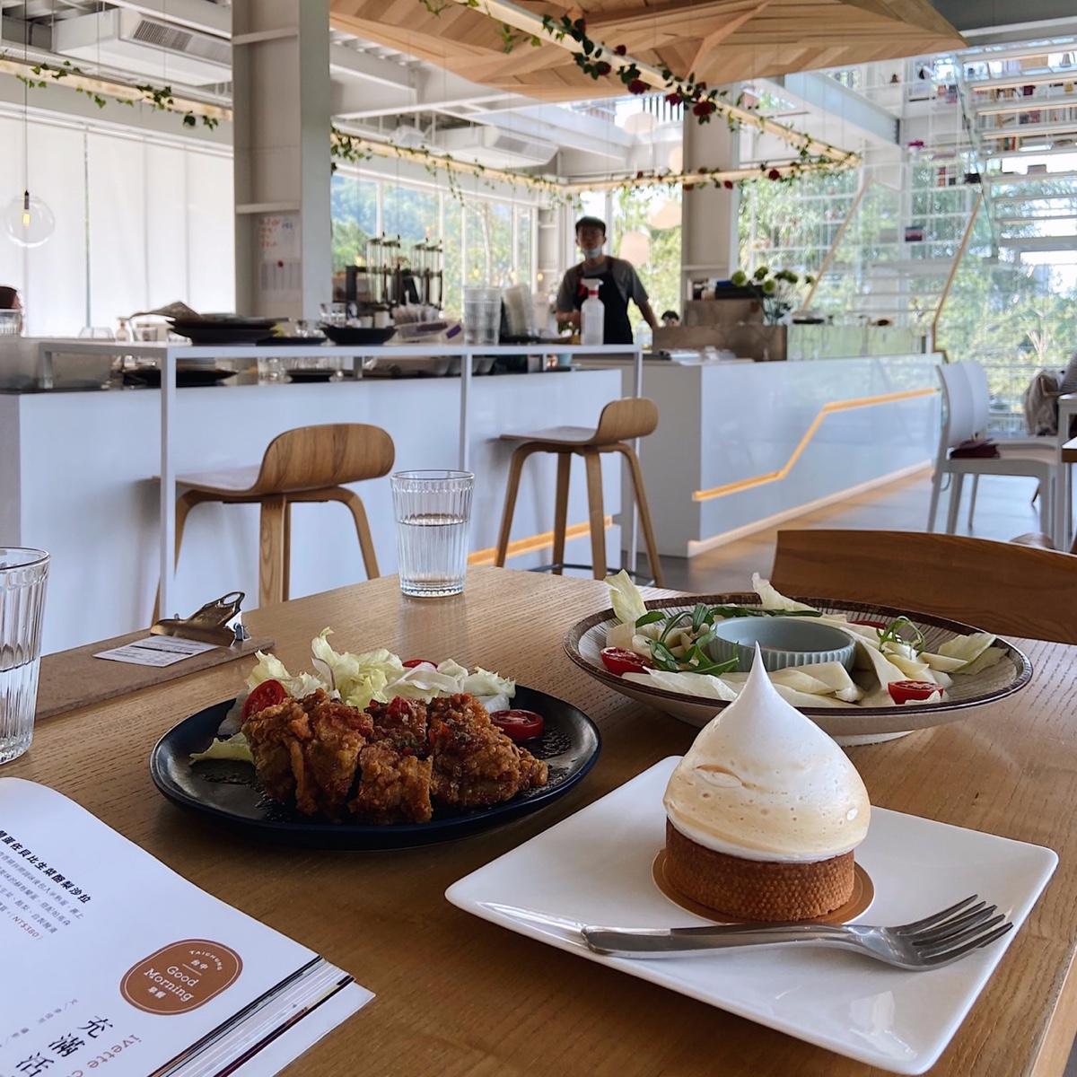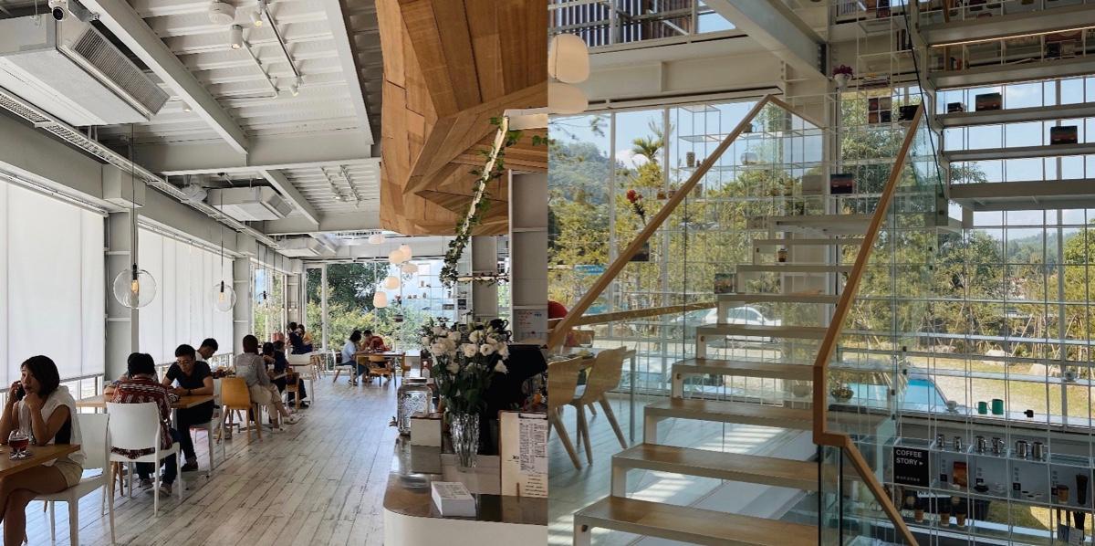 內用挑高純白的空間裡,座位寬敞舒適,落地窗外純白油桐花隨著微風搖曳,原來南投日月潭周邊景點也有這樣浪漫的一隅。