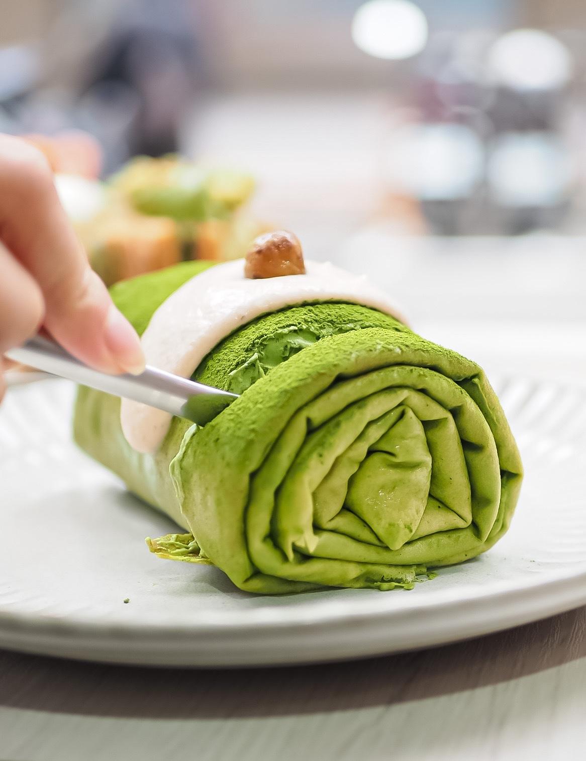 如果之前吃過赤心的全抹茶🍵毛巾捲一定也會超愛這個,因為抹茶🍵濃郁度都是一樣,裡面包了栗子🌰餡我本來以為會很硬,結果是綿密濕潤的,因為有包栗子的關係很難把毛巾捲壓到爆漿,裡面的抹茶醬也是多到不行,抹茶控會超愛的,這個份量兩個人吃就會很飽