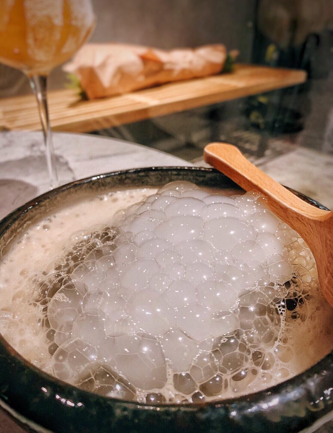 基底是Vodka,加上生命之水跟檸檬🍋撇除味道來說,這碗酒剛上來真的是美到一個不行,不停的在冒泡真的就像溫泉♨️