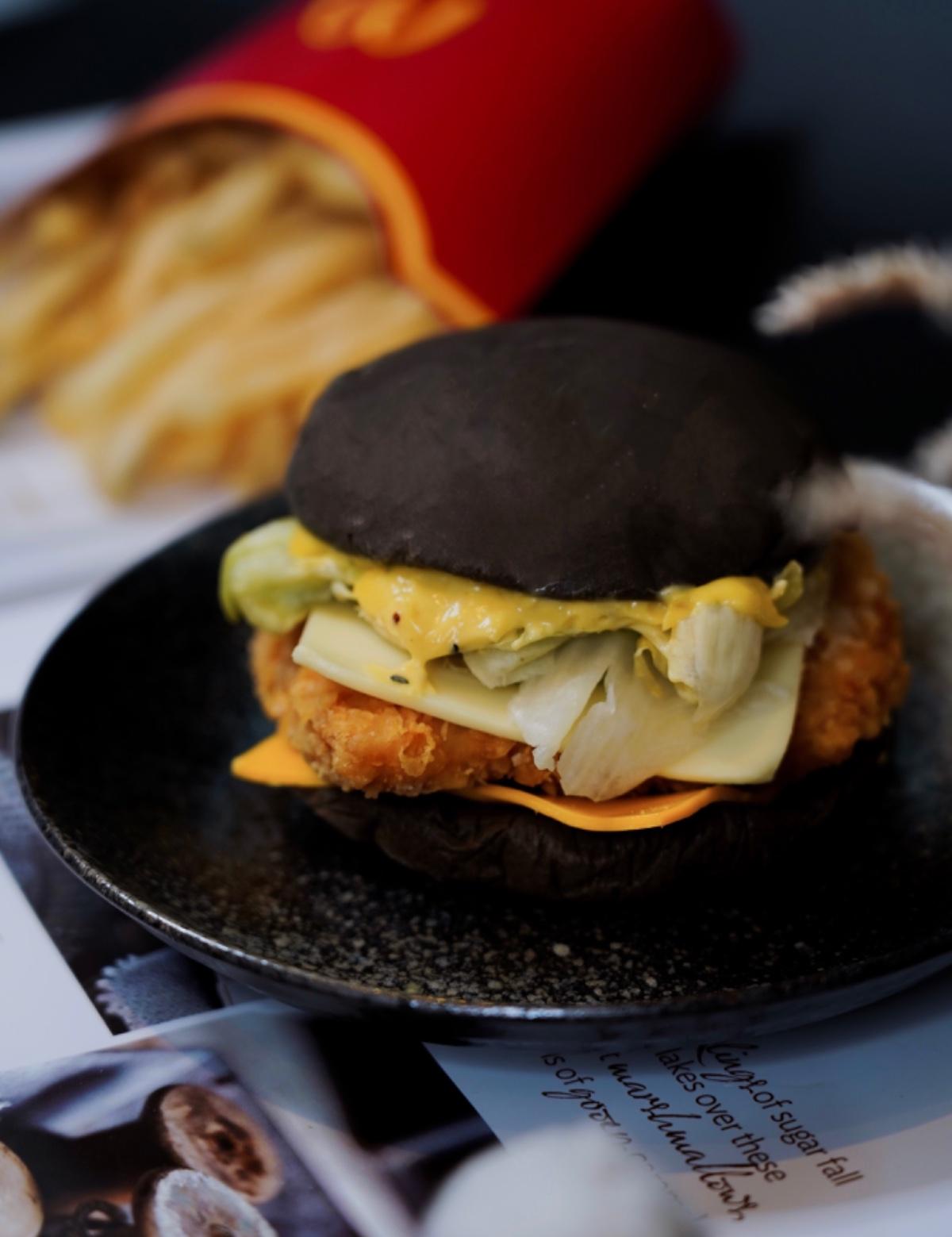 「嫩雞起司黑堡」$94(單點)/$149(經典套餐)