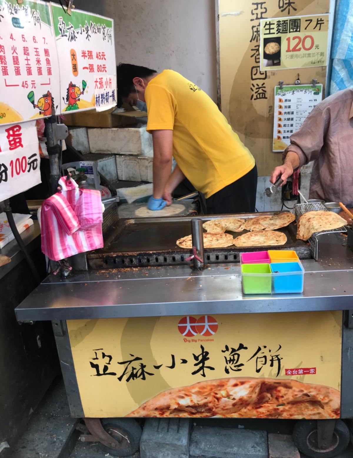 淡水老街有名的小吃就是位於斜坡上的亞麻小米蔥餅。
