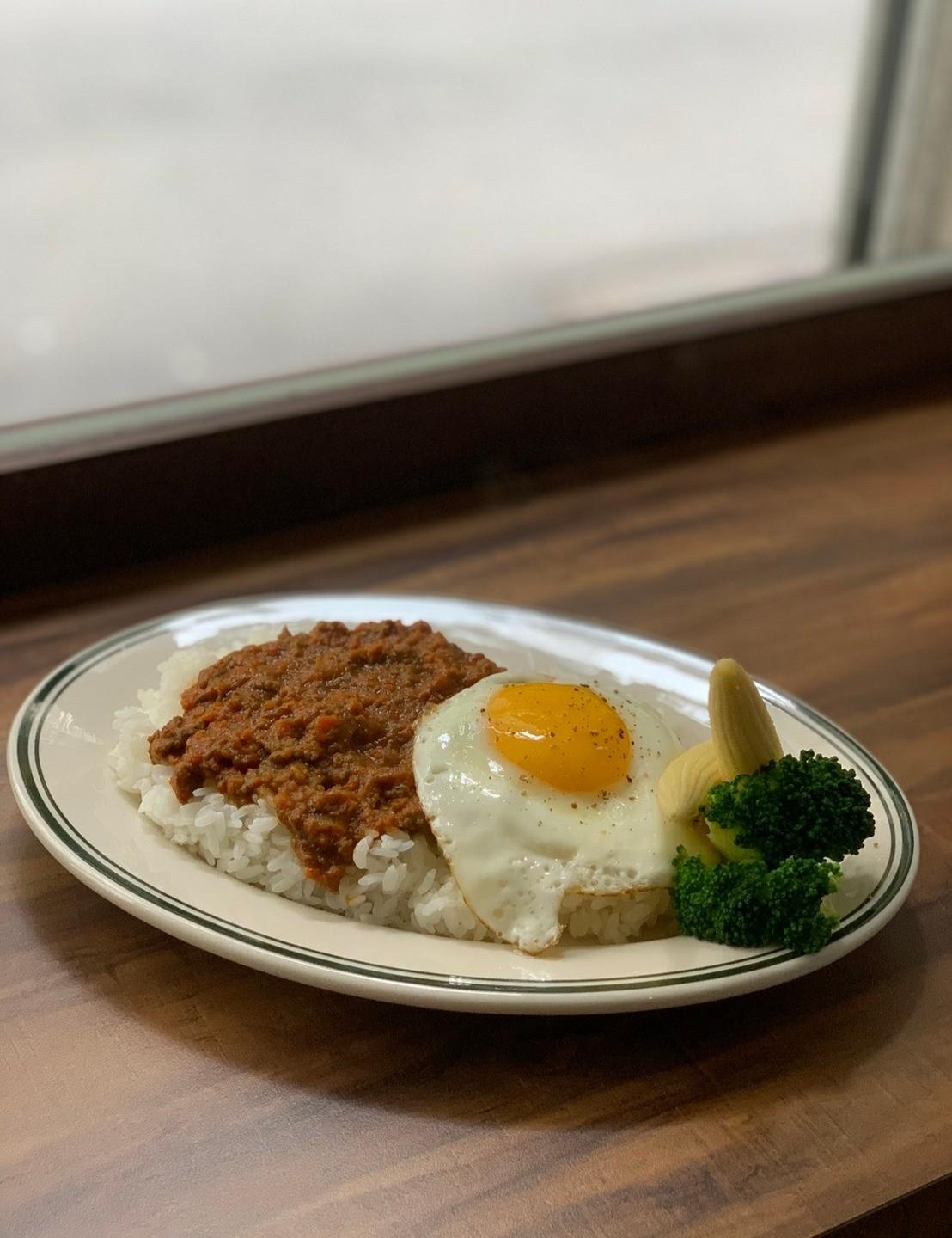 雖然不是咖哩飯專門店但是也很不錯,我個人還滿喜歡這種可以正餐咖啡一次解決的店,這裡的咖哩飯是乾式的肉醬咖哩,套餐有附一杯美式或手沖,可以補差價換其他飲料,除了咖哩飯之外也有牛肉飯,都是很家常舒服的味道!另外蛋沙拉麵包也很不錯,麵包體來自Rise Bakery