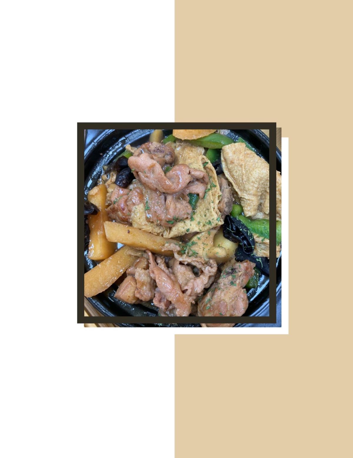 燙呼呼的石鍋裡面載滿滷雞腿肉
